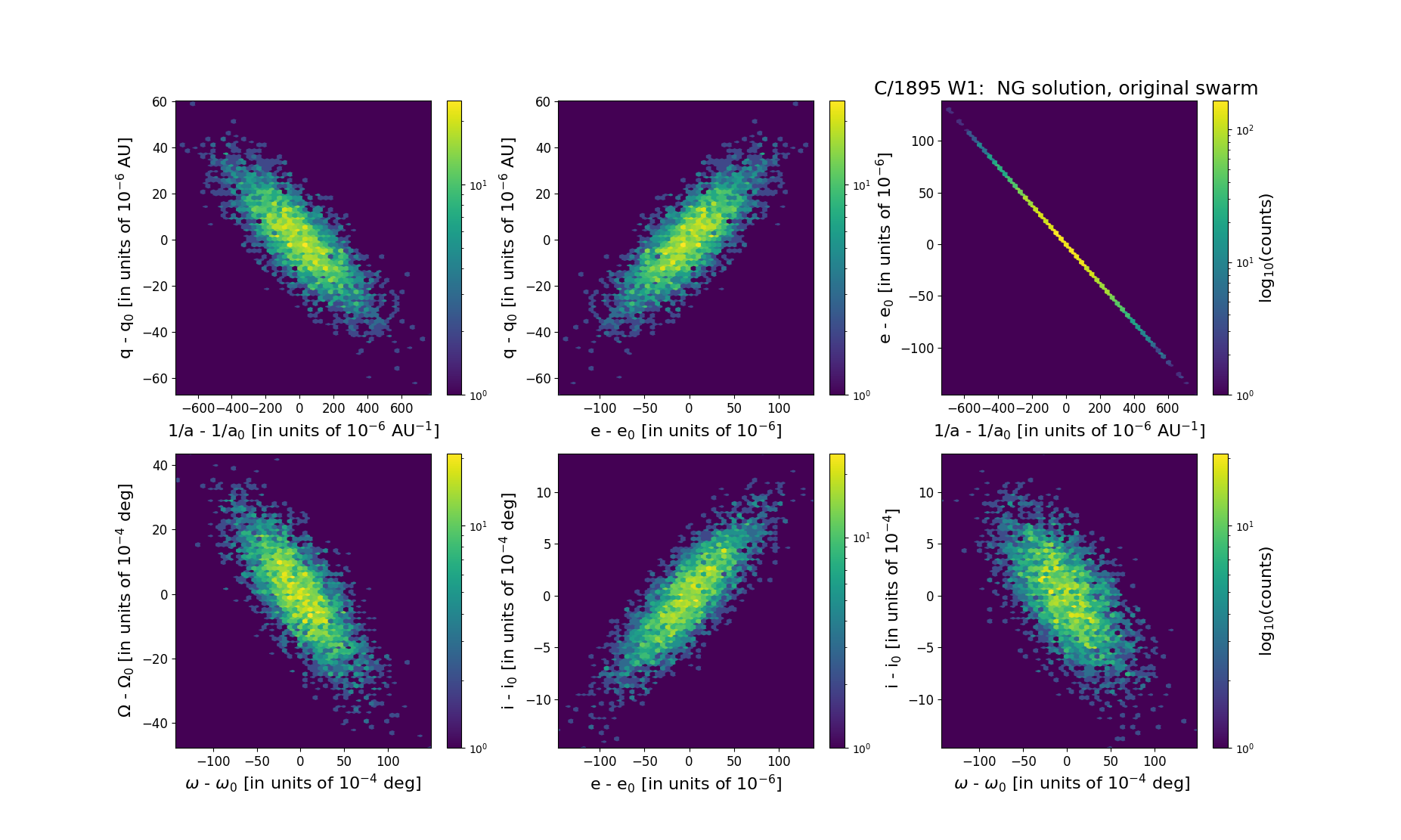 C/1895 W1 was discovered on 17 November 1895 by Charles Dillon Perrine (Lick Observatory, California, USA), that is about a month before its perihelion passage, and it was last seen on 10 August 1896 [Kronk, Cometography: Volume 2].