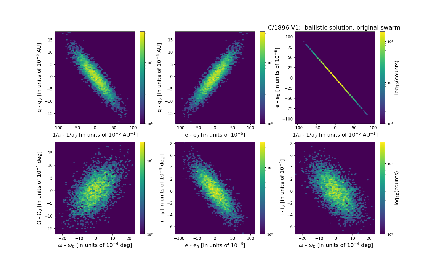 C/1896 V1 was discovered on 3 November 1896 by Charles Dillon Perrine (Lick Observatory, California, US), that is about 3 months before its perihelion passage, and it was last seen on 6 May 1897 [Kronk, Cometography: Volume 2].