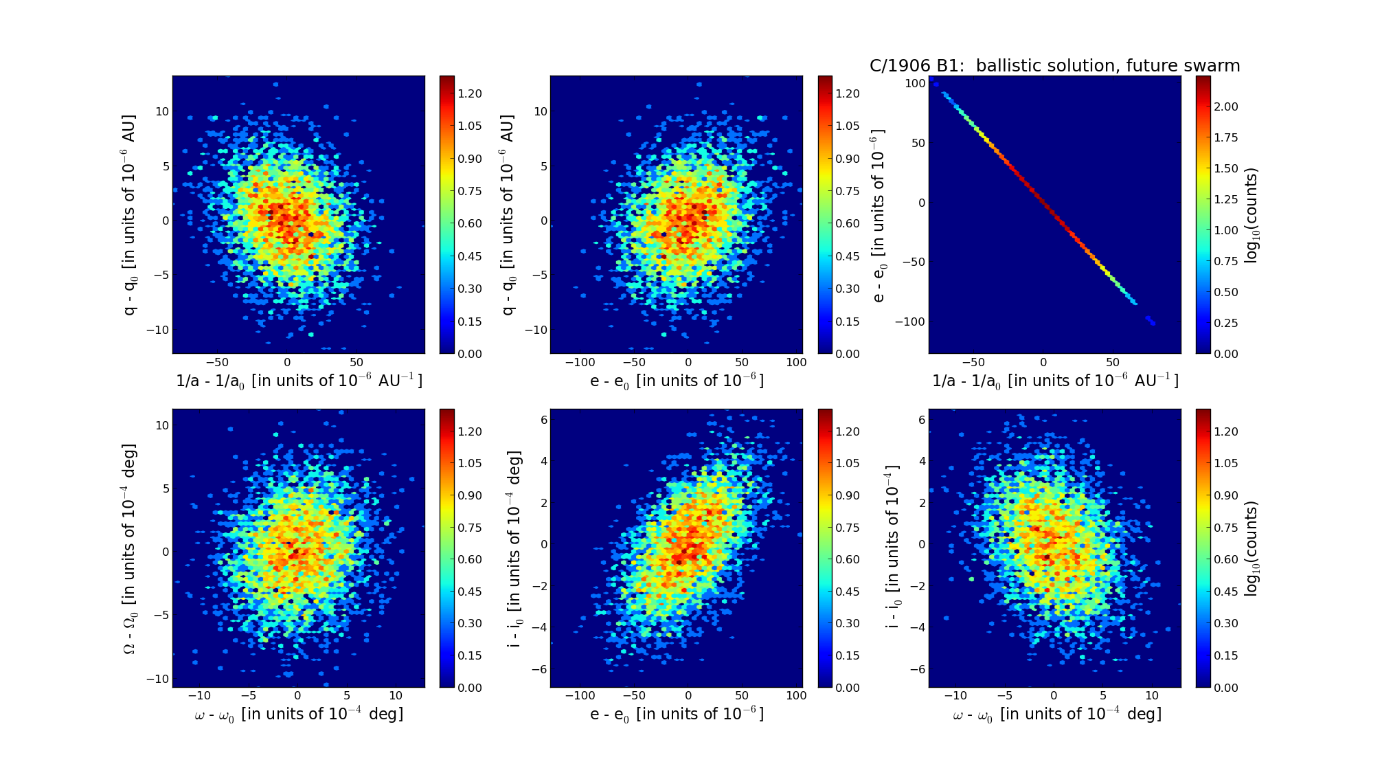 It was possible to obtain the non-gravitational orbit for C/1906 B1 (preferred orbit); however, only radial non-gravitational parameter was determined. This NG solution give elliptical original barycentric orbit (see NG orbit).