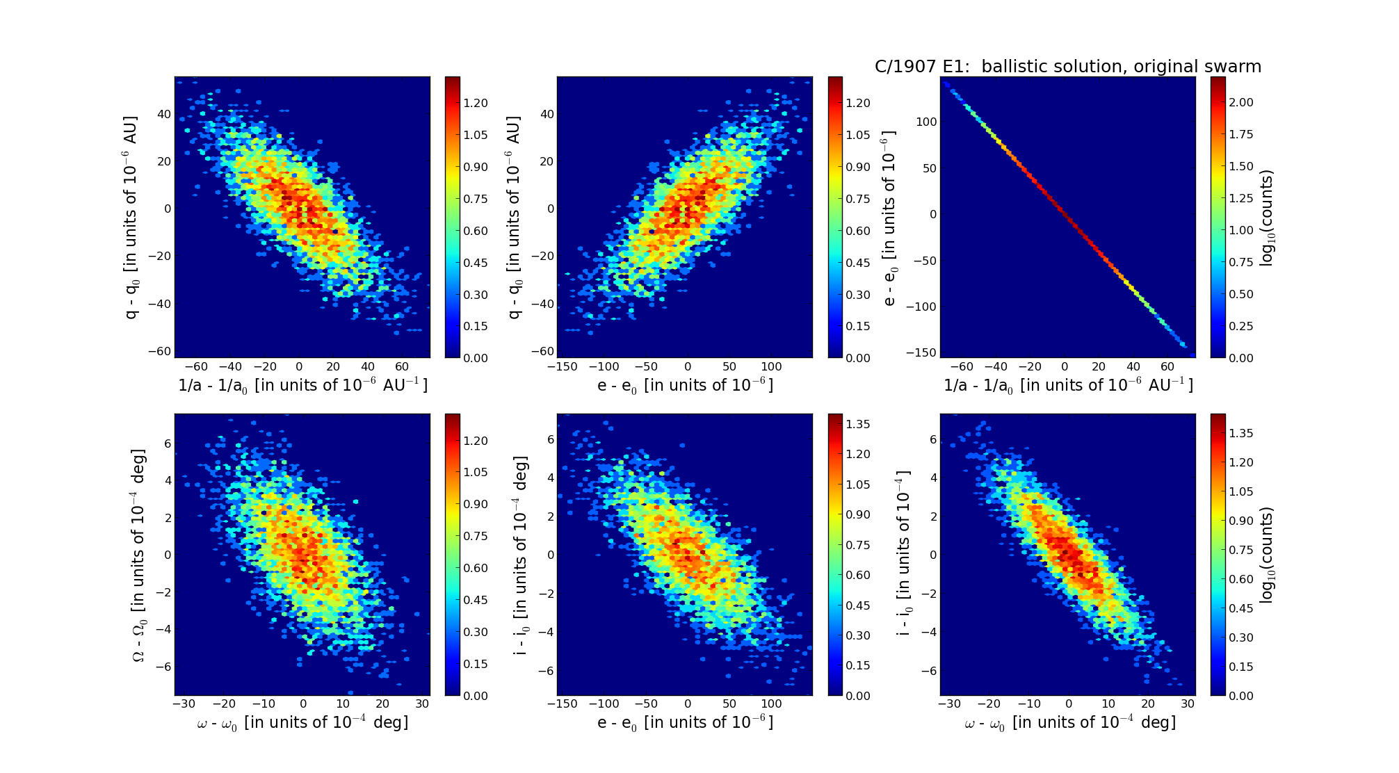 Comet C/1907 E1 was discovered on 9 March 1907 Michel Giacobini (Nice Observatory, France), that is ten days before its perihelion passage, and it was last seen on 26 February 1908 [Kronk, Cometography: Volume 3].