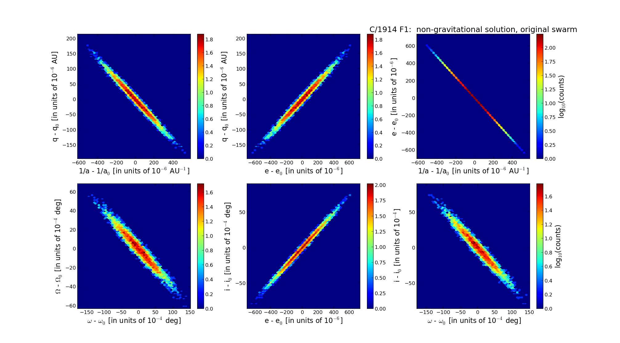 It was possible to determine the non-gravitational orbit for C/1914 F1 (preffered orbit), the RMS for NG orbit decreases (from 3.33 arcsec to 3.12 arcs) and some trends in O-C disappears (see figure). According to this model original semimajor axis of C/2014 F1 is about 1670 au.
