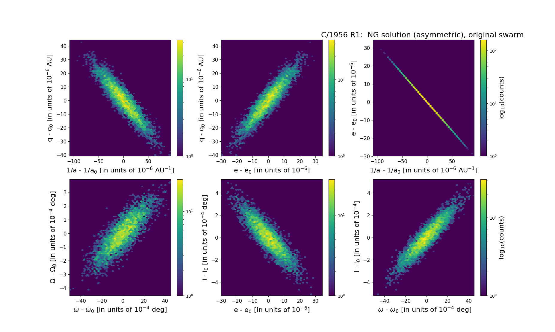 This is a comet with nongravitational effects strongly manifested in positional data fitting. Two NG solutions given here are based on data spanning over 0.602 yr in a range of heliocentric distances: 1.16 au – 0.778 au (perihelion) – 2.86 au; asymmetric NG solution was chosen as preffered orbit.