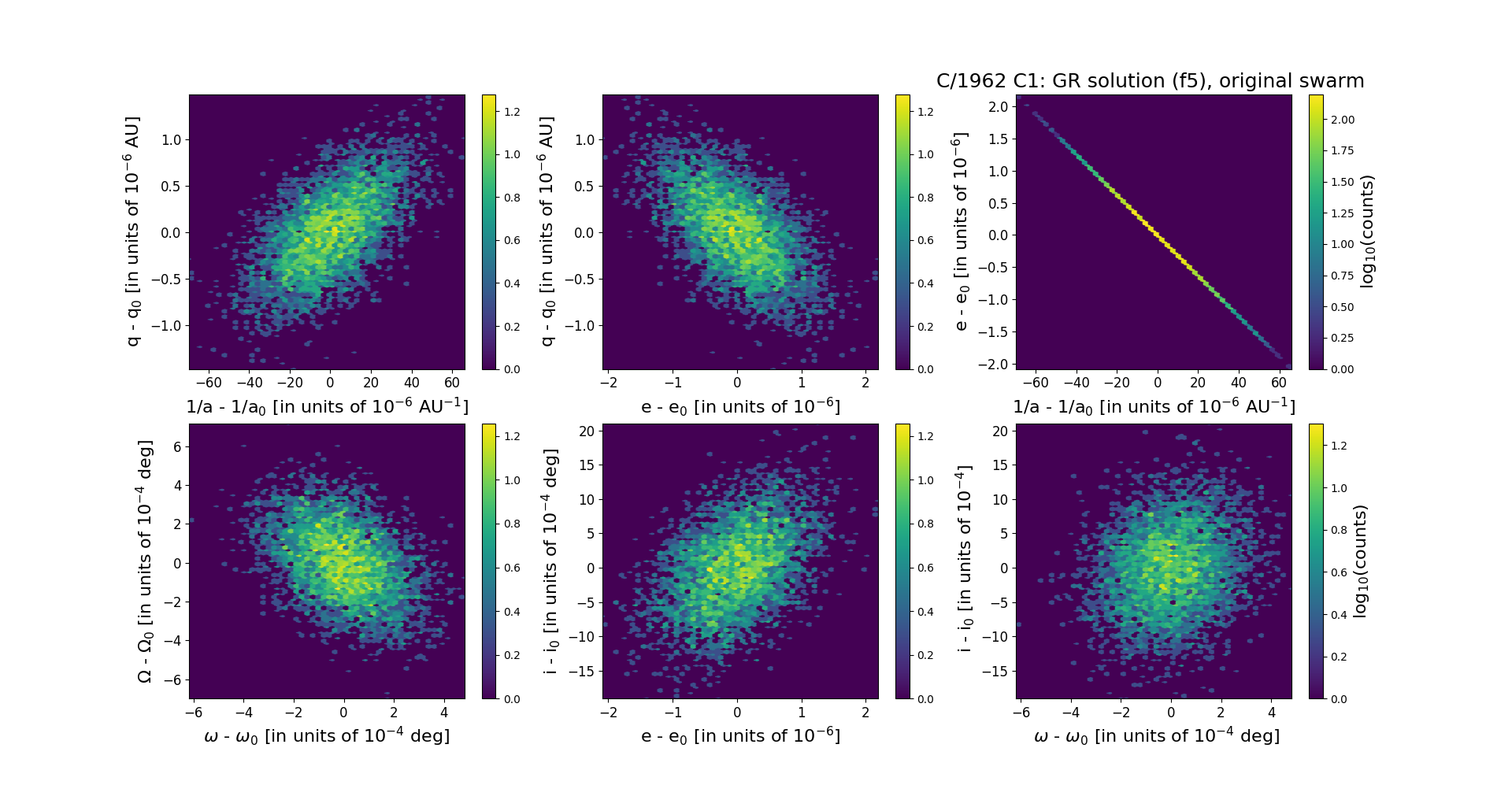 Based on the GR solutions, one might infer that this is an Oort spike comet. However, both NG solutions suggest significantly smaller original semi-major axes around 3,300 au ('bn' and 'fn').