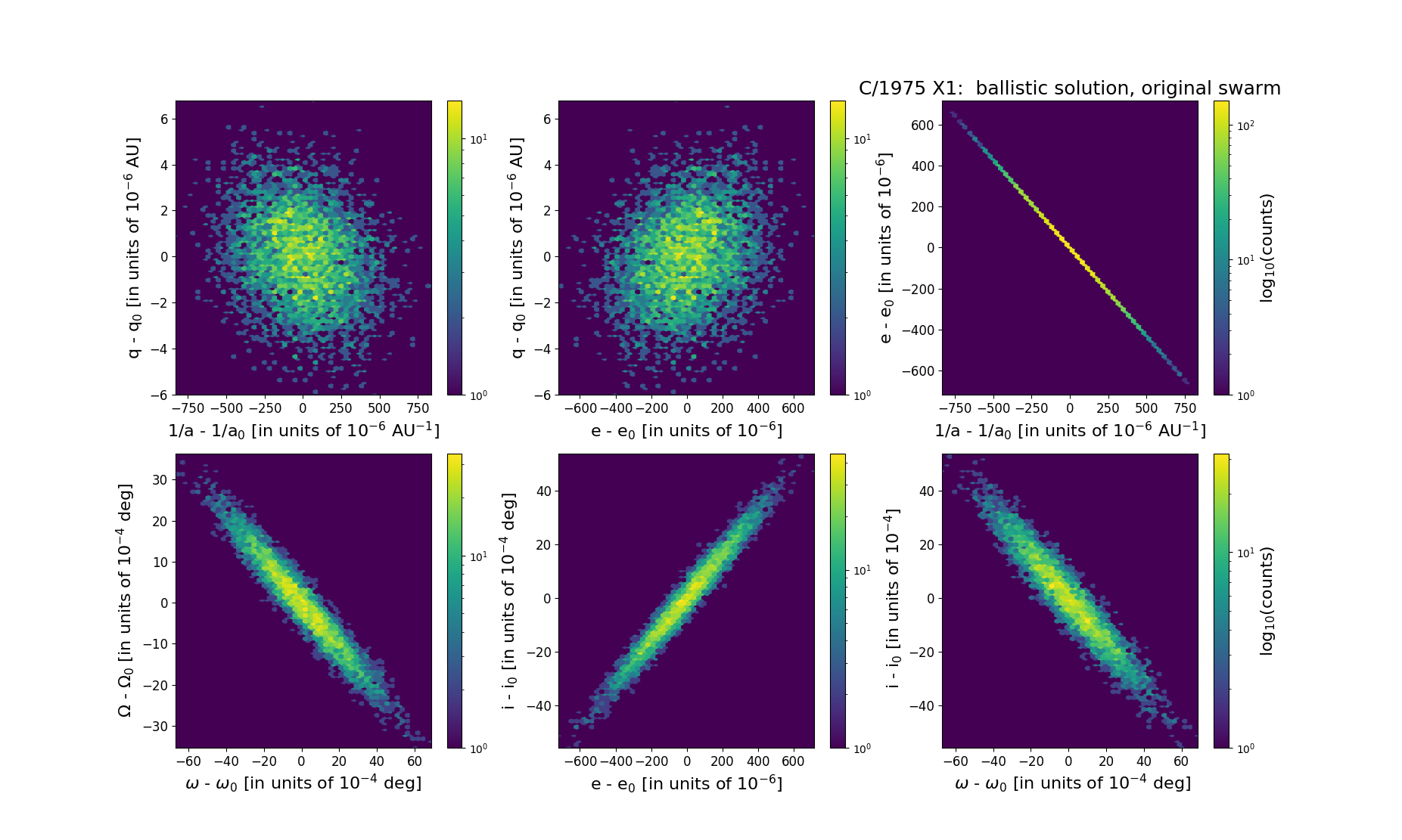 Solutions given here are based on data spanning over 0.156 yr in a range of heliocentric distances: 0.98 au – 0.864 au (perihelion) – 1.04 au.