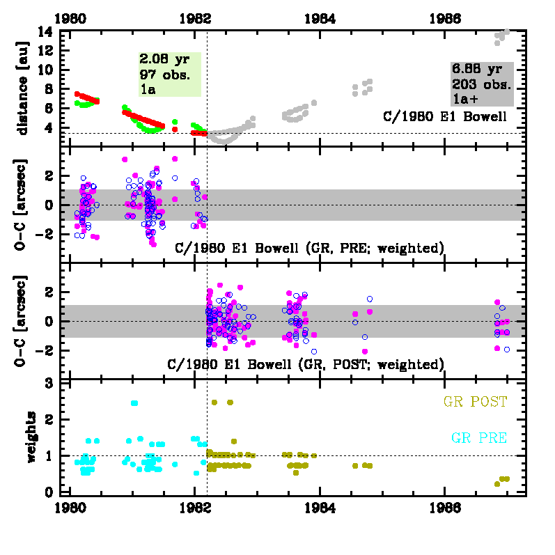 | data arc selection | data generally limited to pre-perihelion (PRE) | |