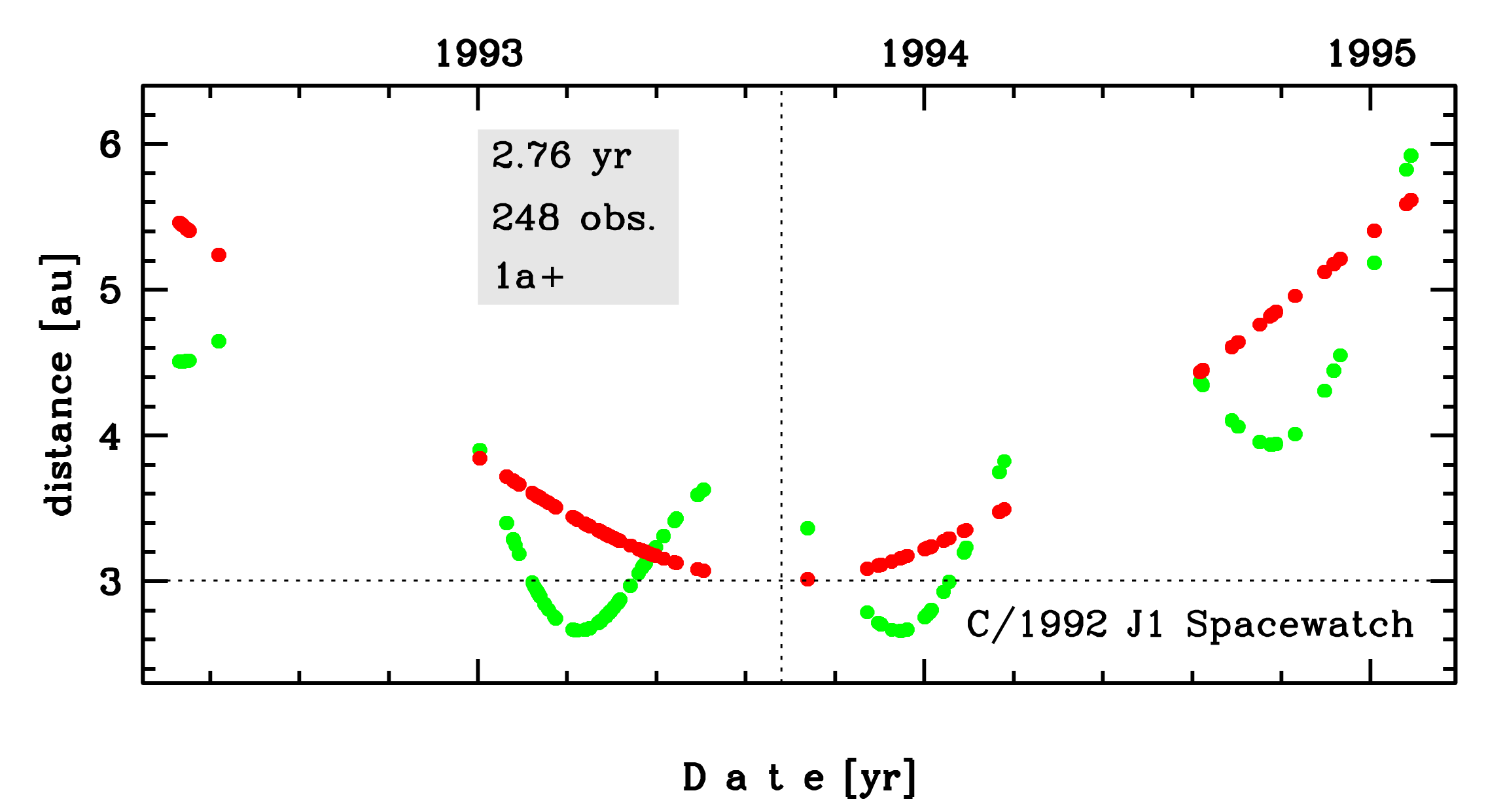 | detectability of NG effects in the comet's motion | NG effects not determinable | |