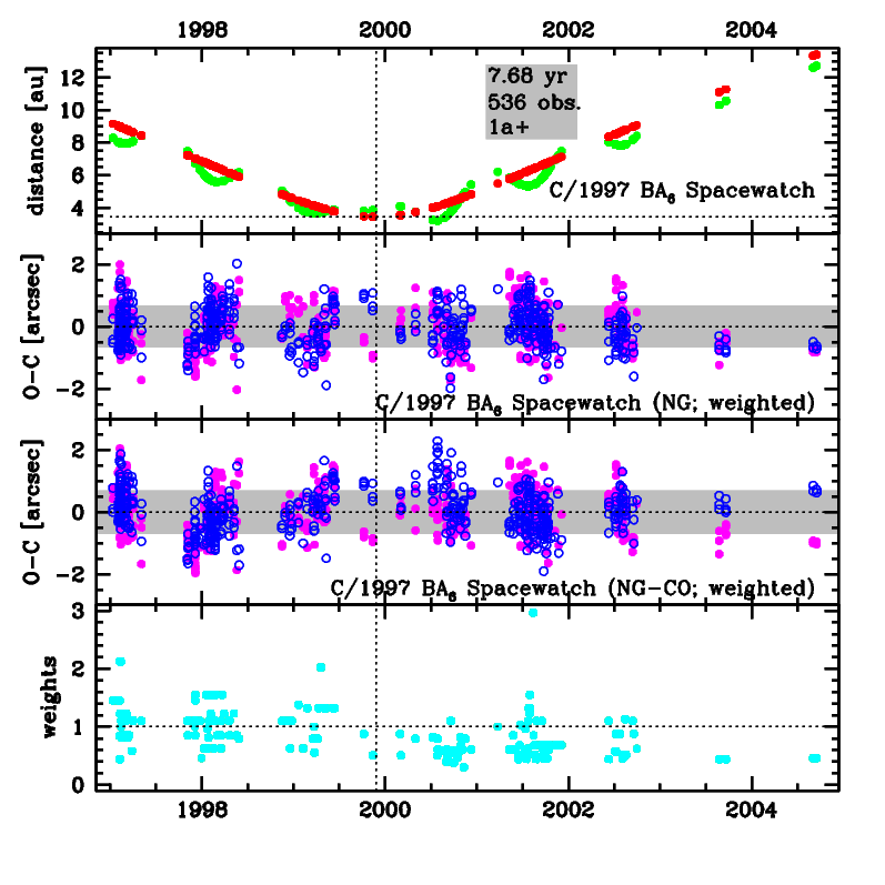 | type of model of motion | NC - non-gravitational orbits for symmetric CO-g(r)-like function | |