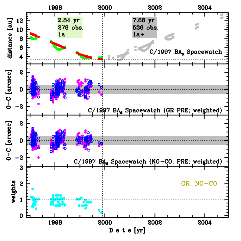 | data arc selection | data generally limited to pre-perihelion (PRE) | |