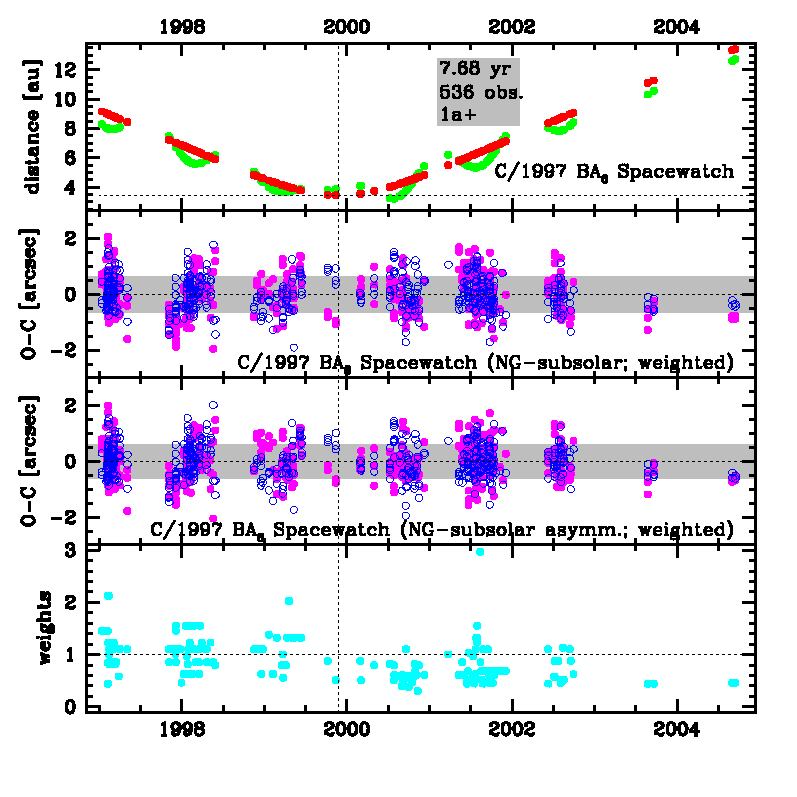 | type of model of motion | NI - non-gravitational orbits for water sublimation from subsolar point, asymmetric. | |