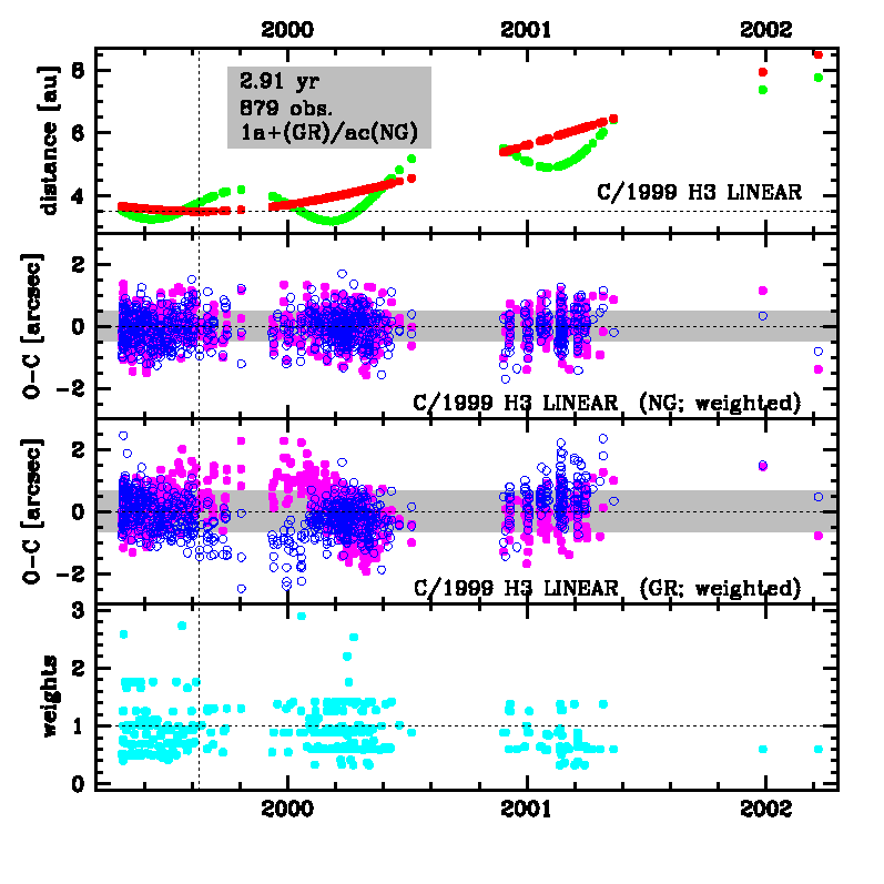 NG orbits using full data-arc as well as using post-perihelion data are determinable.