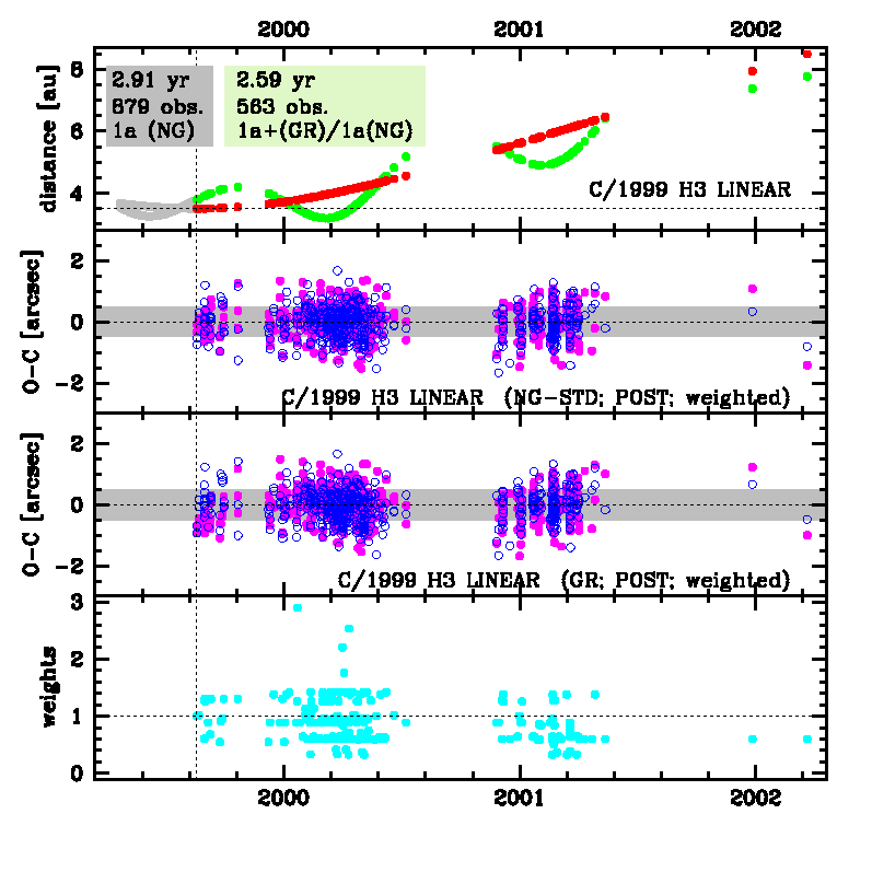 NG orbits using full data-arc as well as using post-perihelion data are determinable.