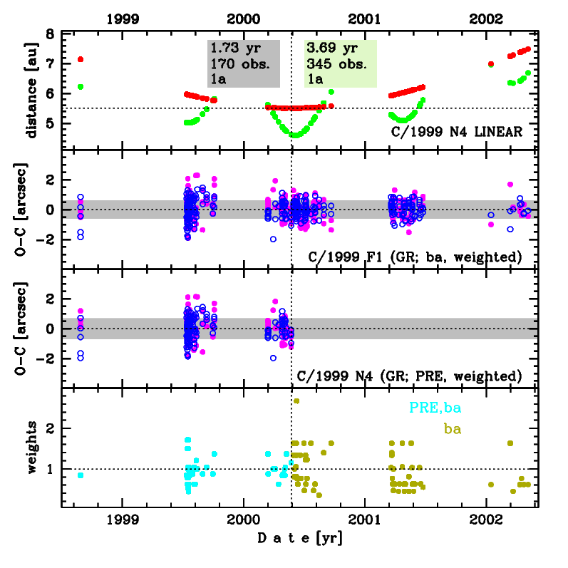 | data arc selection | data generally limited to pre-perihelion (PRE) | |