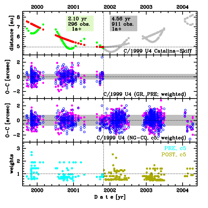 | data arc selection | data generally limited to pre-perihelion (PRE) | |