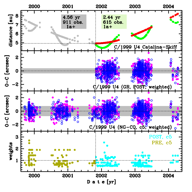 | detectability of NG effects in the comet's motion | comet with determinable NG~orbit | |