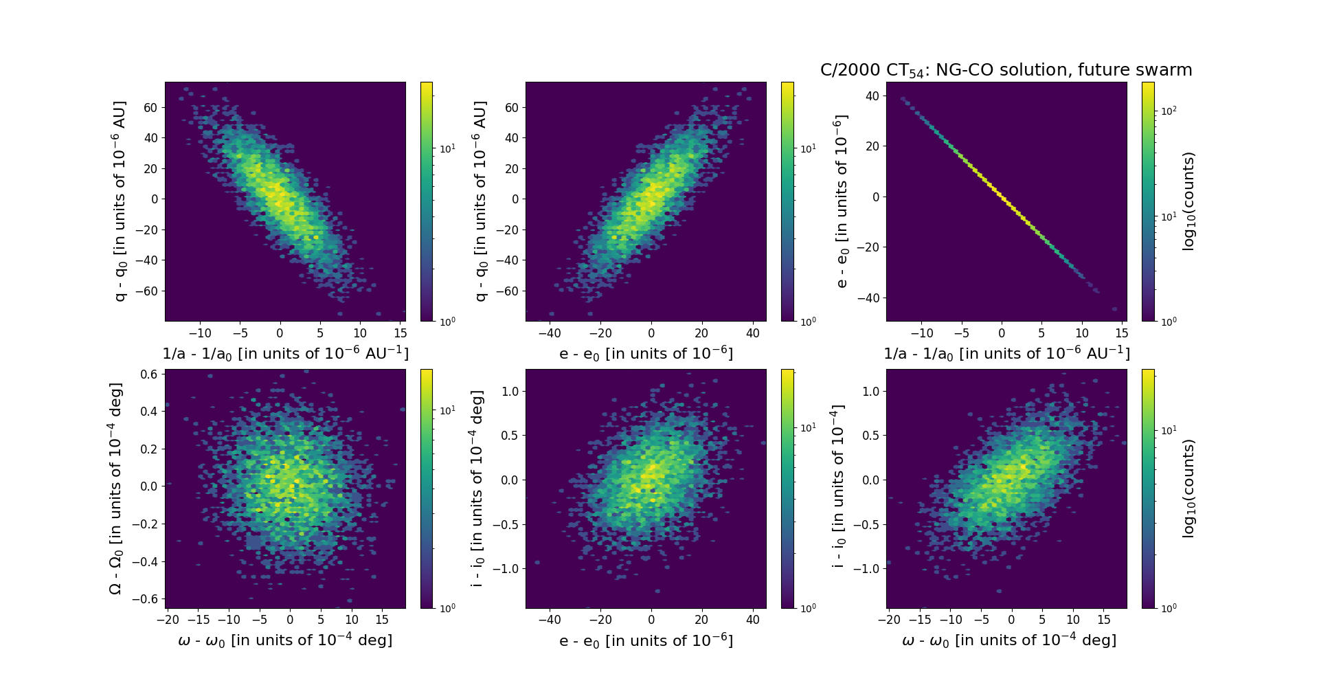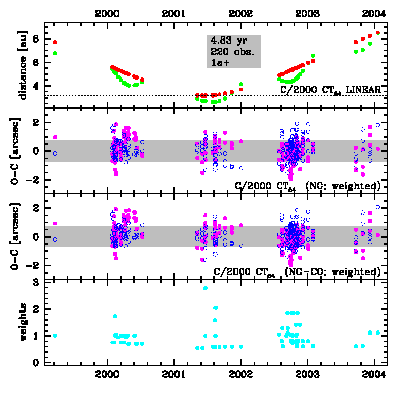 Non-gravitational solution is based on data span over 4.8 yr in a range of heliocentric distances: 7.72 au – 3.156 au (perihelion) – 8.52 au.