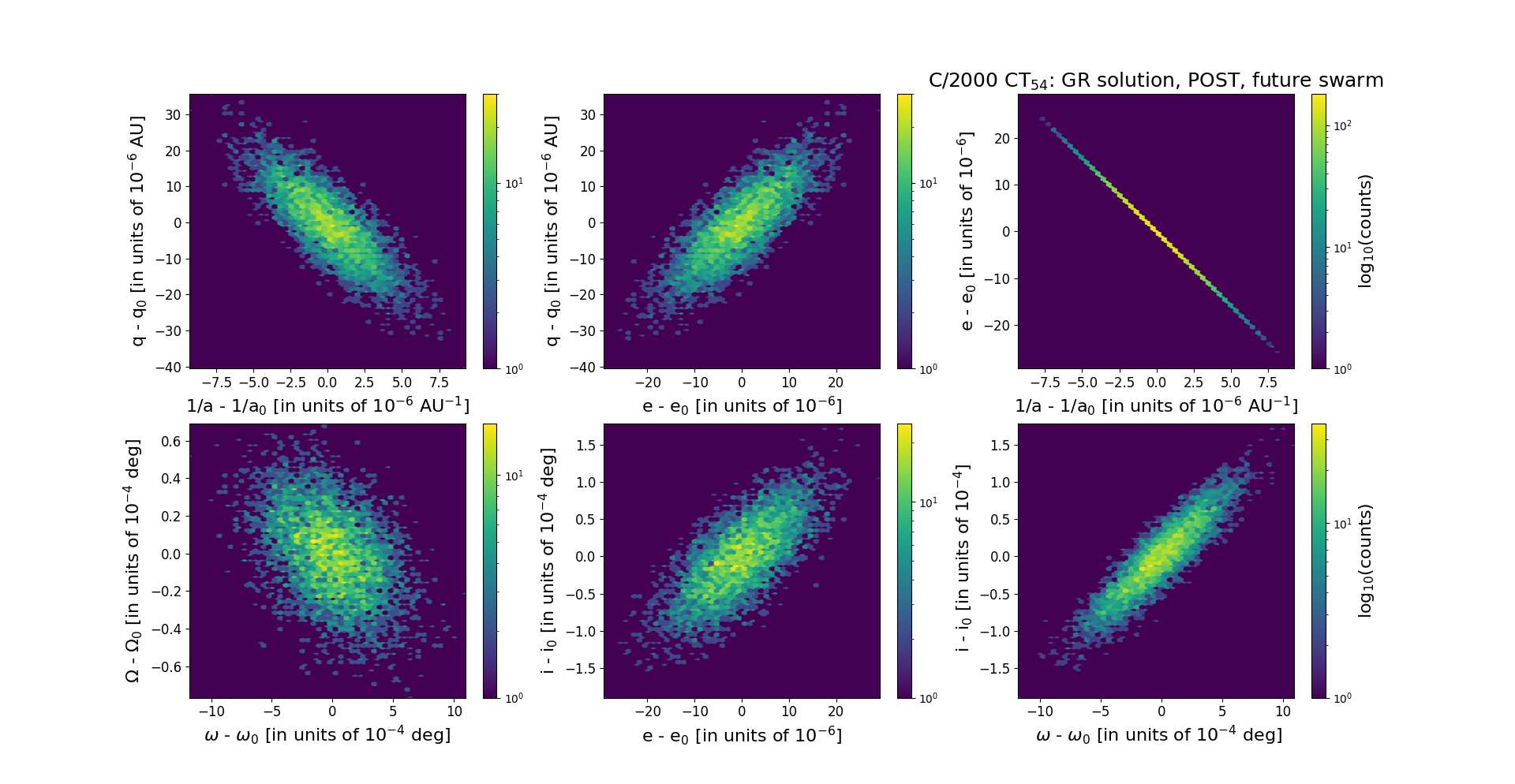 Non-gravitational solution is based on data span over 4.8 yr in a range of heliocentric distances: 7.72 au – 3.156 au (perihelion) – 8.52 au.
