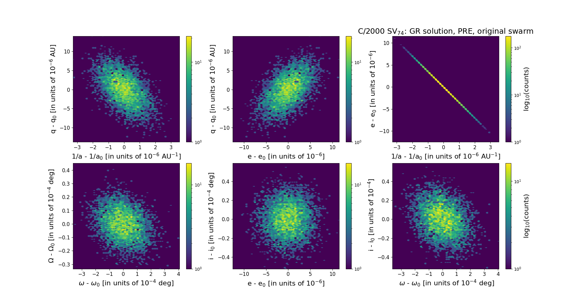 C/2000 SV74 was observed 4.7 yr in a range of heliocentric distances: 6.26 au – 3.542 au (perihelion) – 9.51 au.