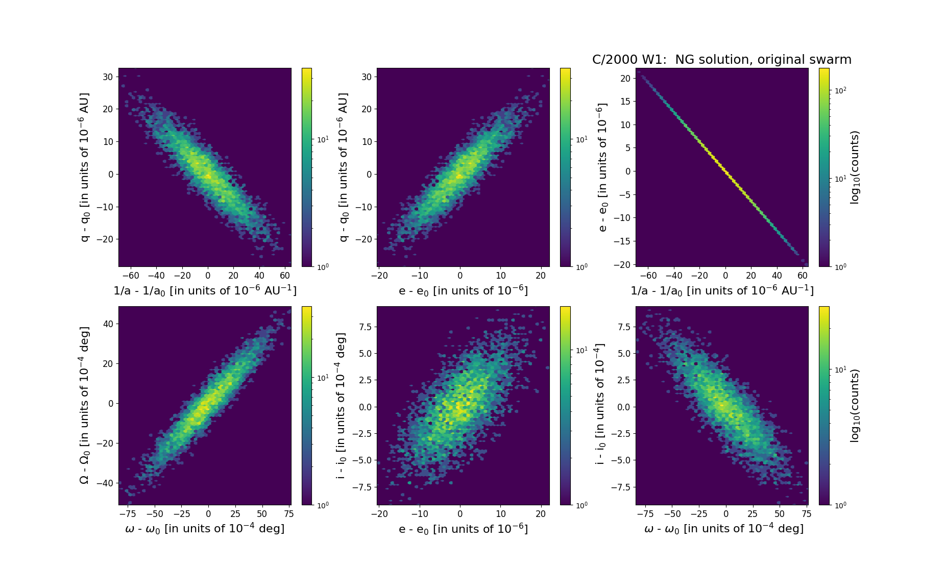 Solutions given here are based on data spanning over 0.159 yr in a range of heliocentric distances: 0.858 au – 0.321 au (perihelion) – 0.820 au..