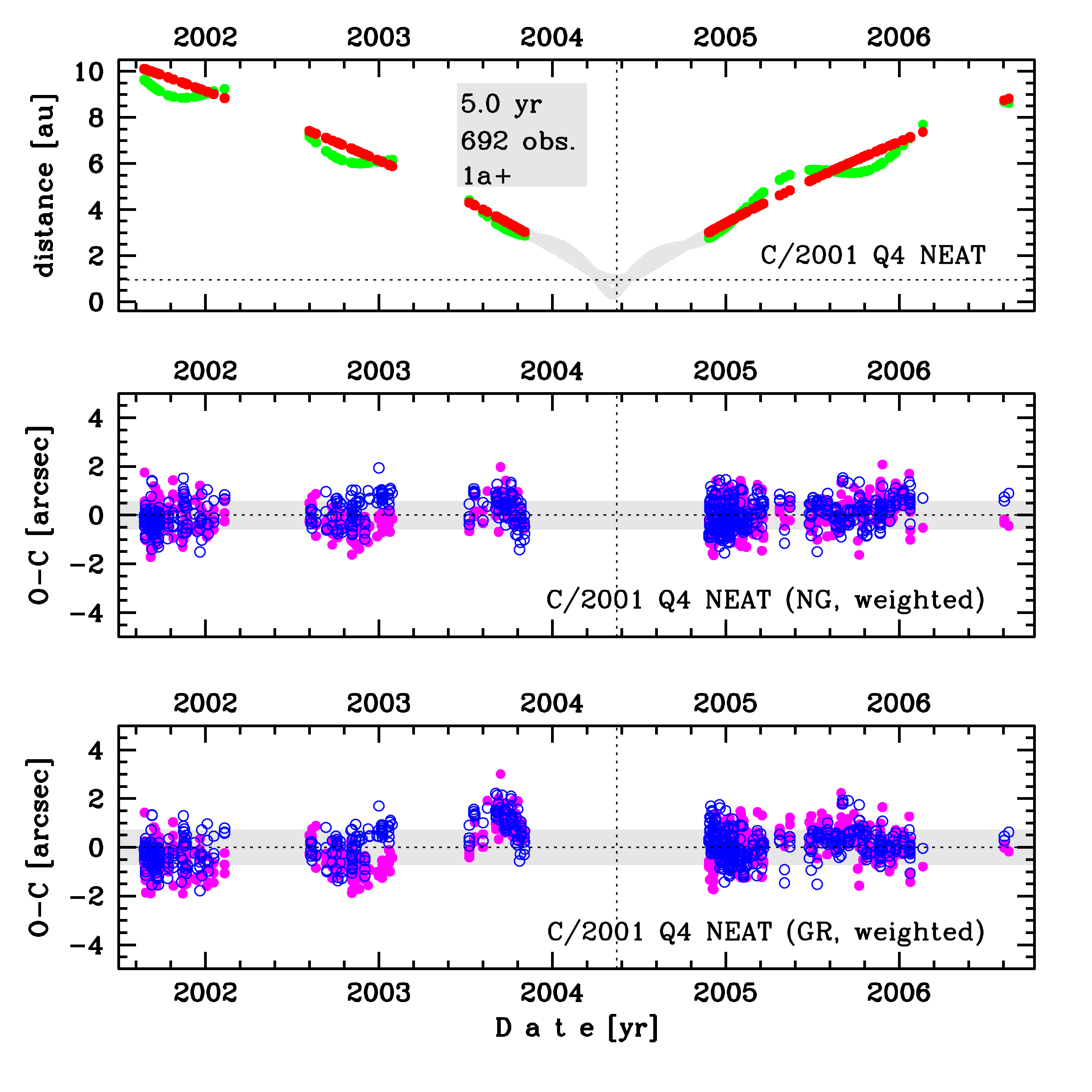 C/2001 Q4 is a comet with non-gravitational effects strongly manifested in positional data fitting. Preferred orbital solution given here is based on data spanning over 4.98 yr in a range of heliocentric distances from 10.11 au to 8.82 au; however data taken around perihelion passage are excluded (see figure).