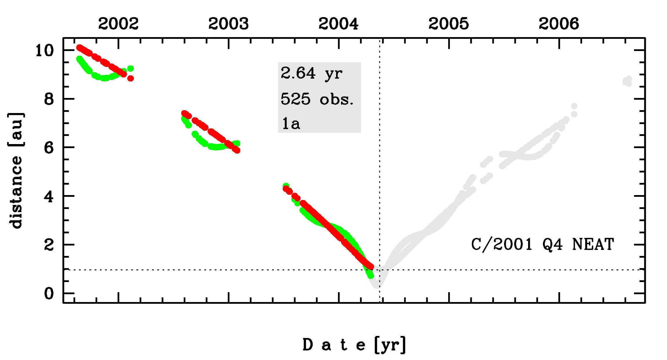 | data arc selection | data generally limited to pre-perihelion (PRE) | |