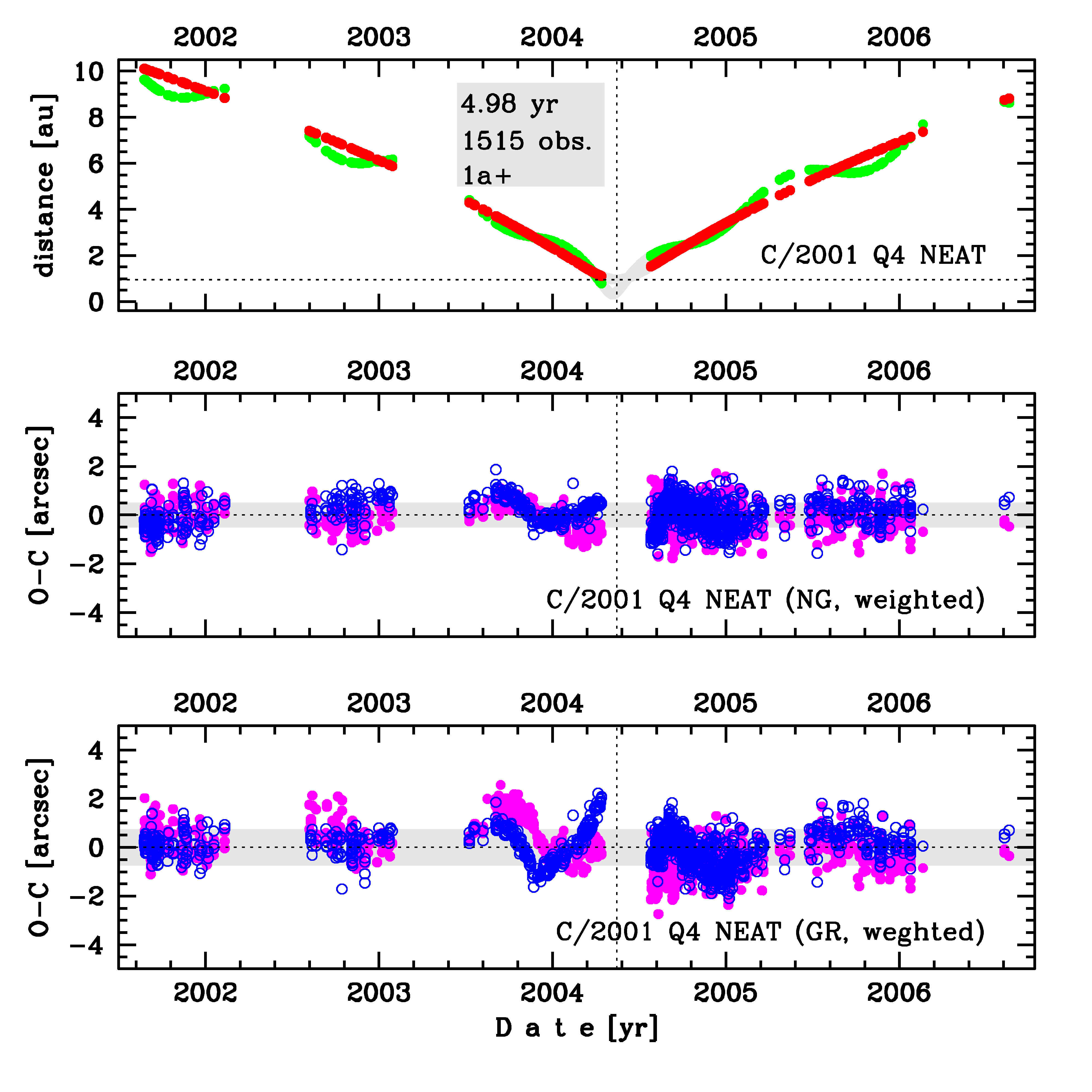 C/2001 Q4 is a comet with non-gravitational effects strongly manifested in positional data fitting. Preferred orbital solution given here is based on data spanning over 4.98 yr in a range of heliocentric distances from 10.11 au to 8.82 au; however data taken around perihelion passage are excluded (see figure).