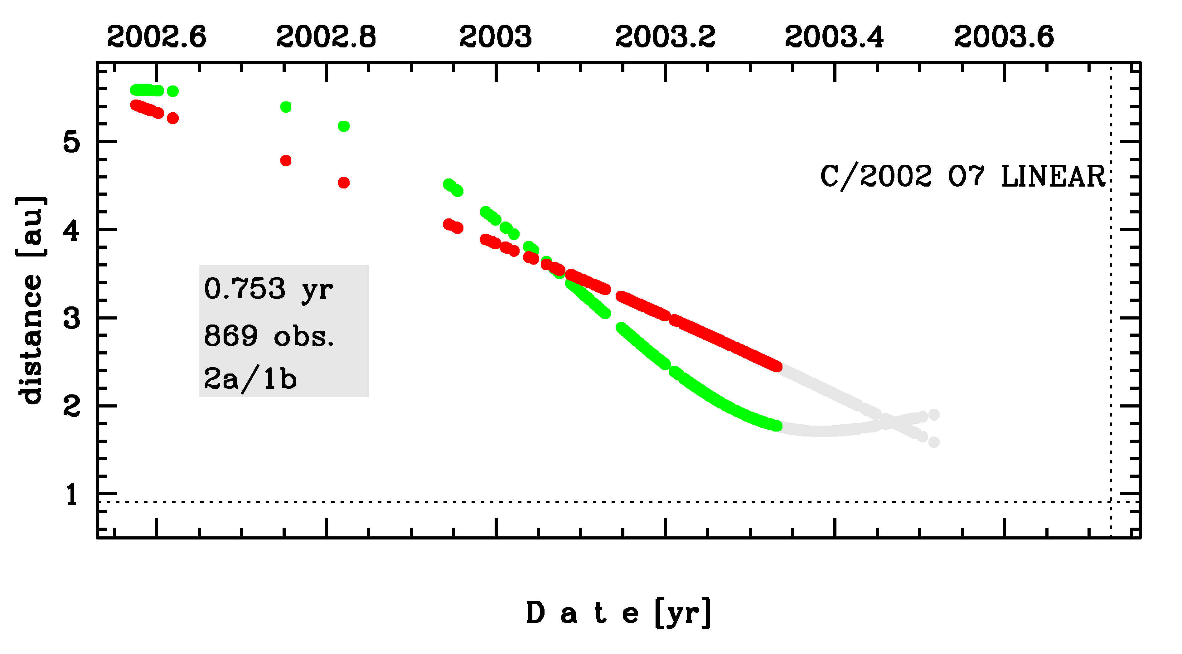 | data arc selection | data generally limited to pre-perihelion (PRE) | |