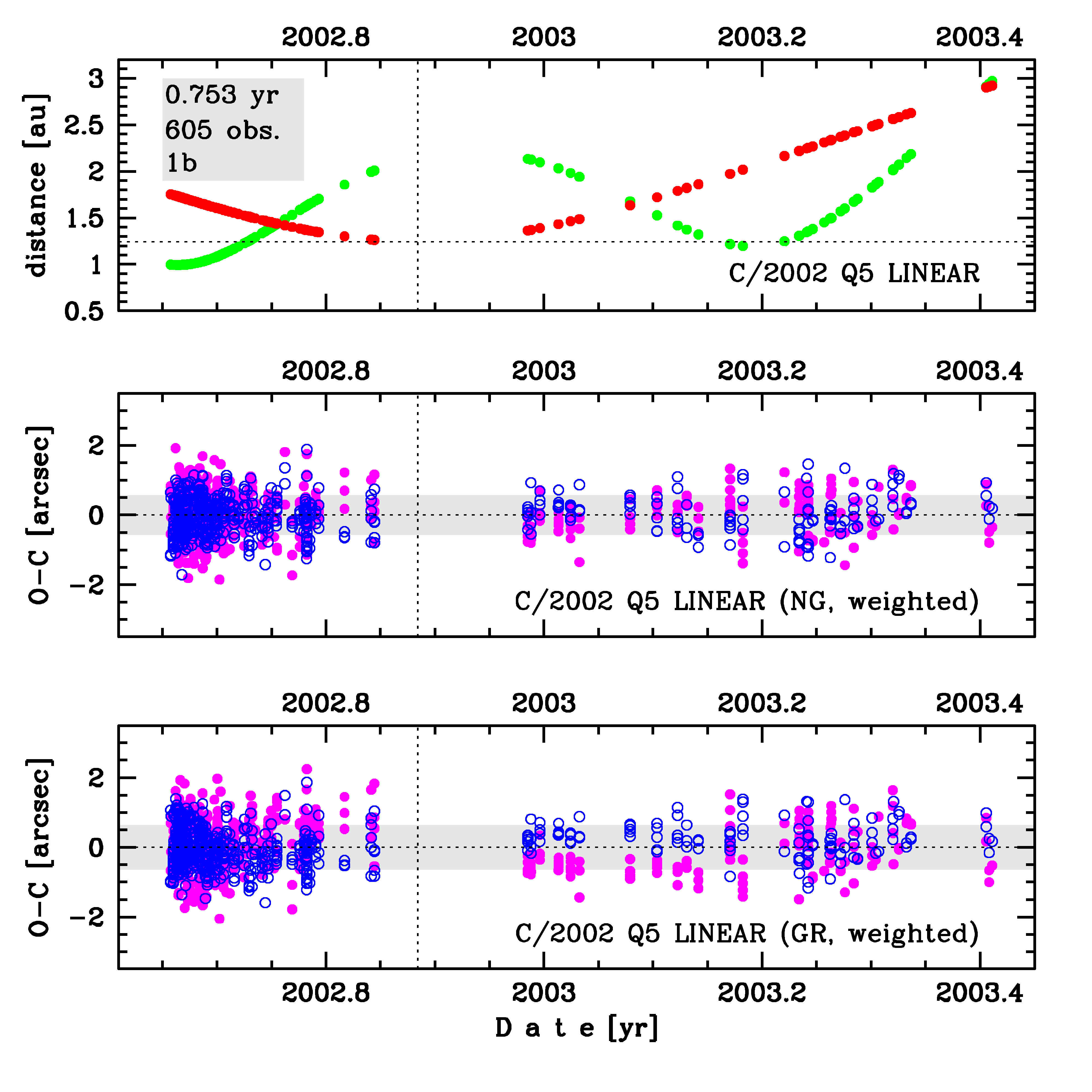 Solutions given here are based on data spanning over 0.753 yr in a range of heliocentric distances: 1.75 au – 1.24 au (perihelion) – 2.92 au.