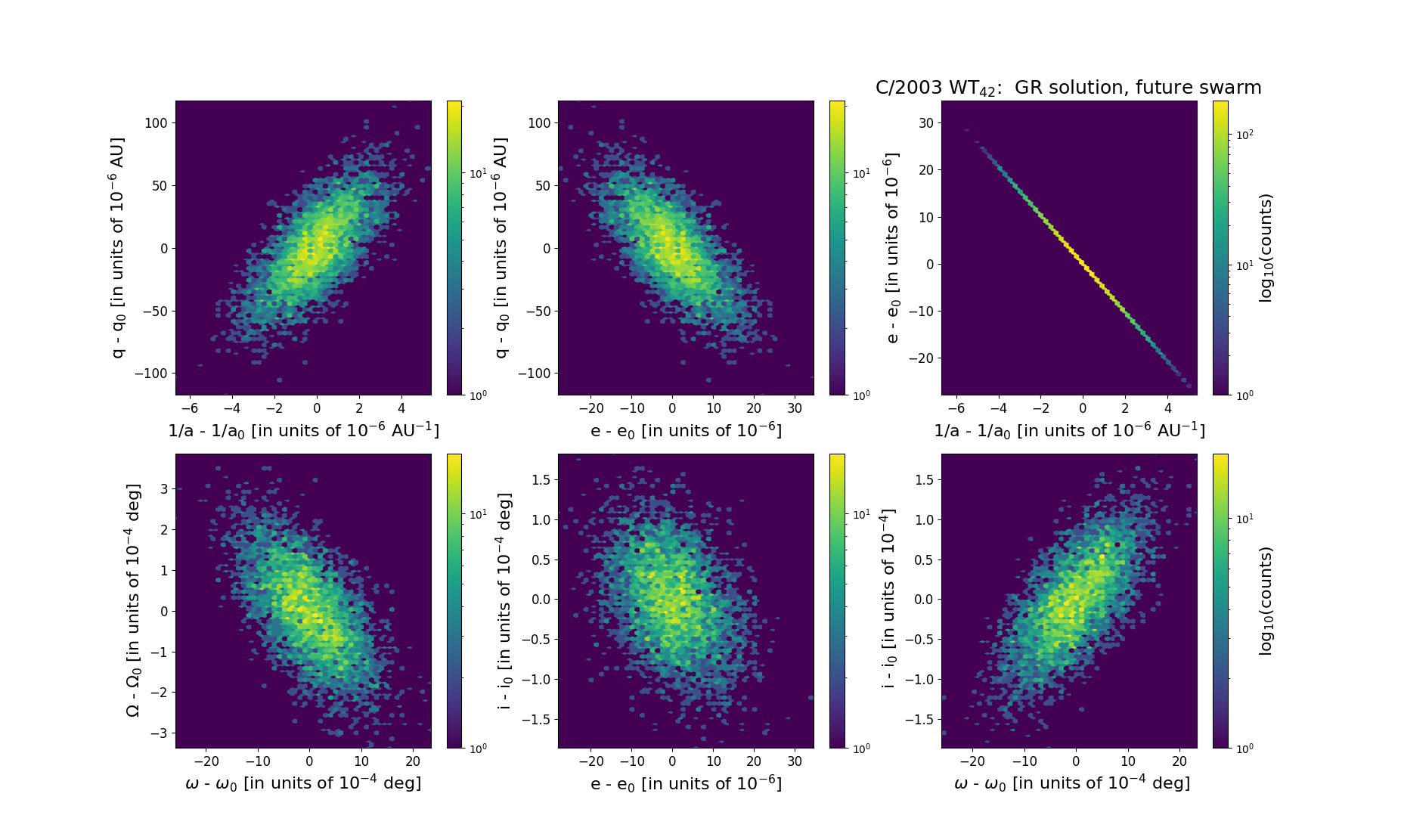 C/2003 WT42 was observed 4.6 yr during five oppositions in a range of heliocentric distances: 8.26 au – 5.191 au (perihelion) – 7.66 au.