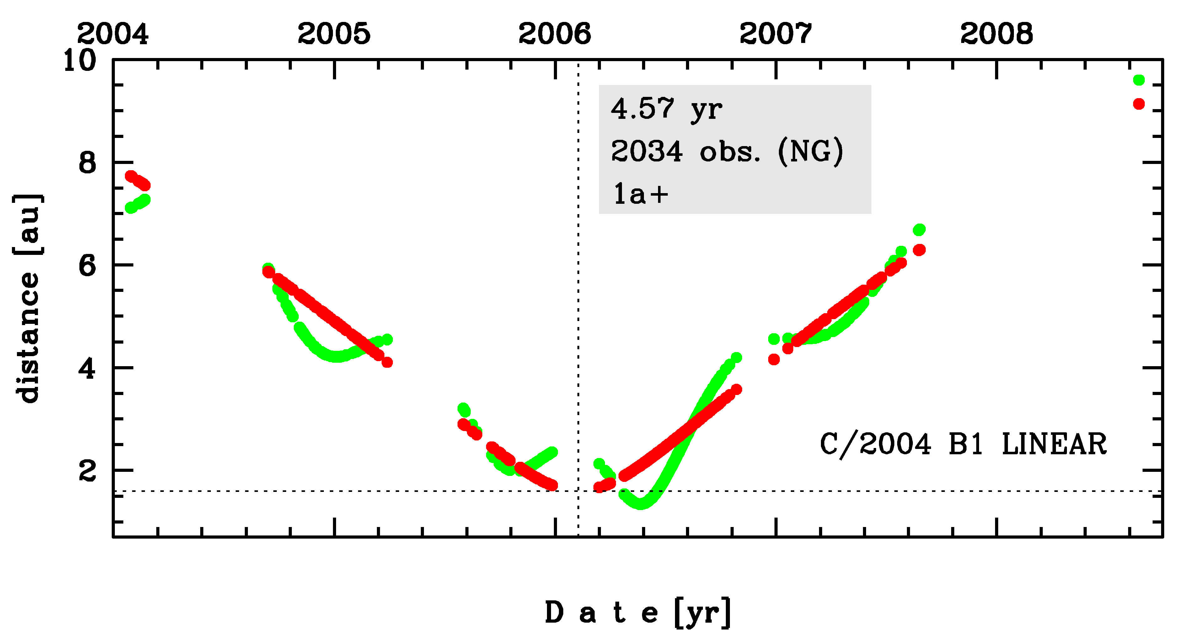 Solutions given here are based on data spanning over 4.57 yr in a range of heliocentric distances: 7.74 au – 1.602 au (perihelion) – 9.15 au