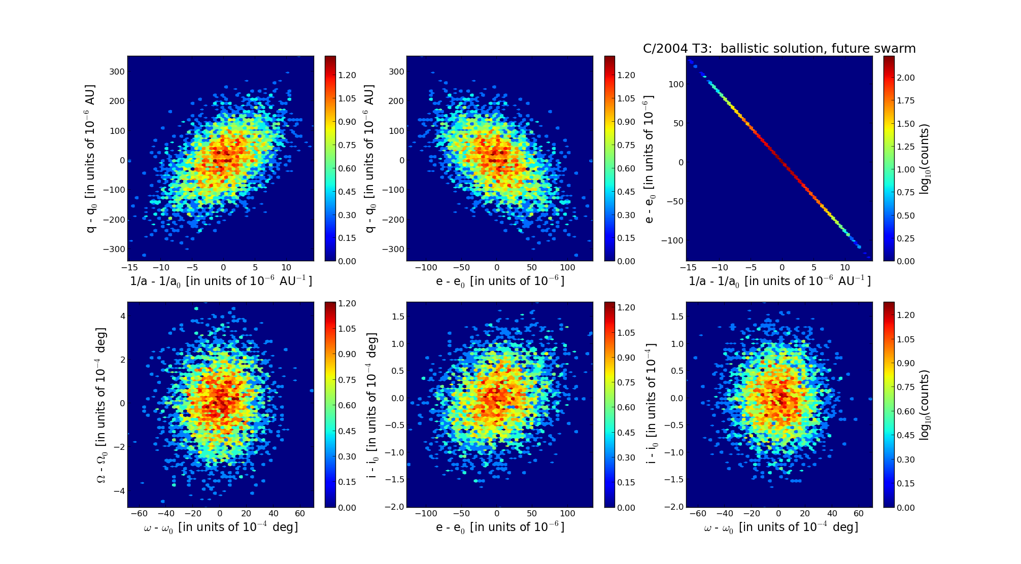 C/2004 T3 was discovered by Robert H. McNaught on images from the Siding Spring 0.5m Uppsala Schmidt on 12 October 2004. Next days, its cometary apperance was confirmed by observers [IAUC 8421, 2004 October 21]. At the moment of discovery, it was 1.5 yr after its perihelion passage (see figure).