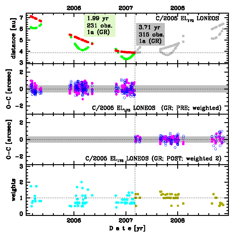 | data arc selection | data generally limited to pre-perihelion (PRE) | |