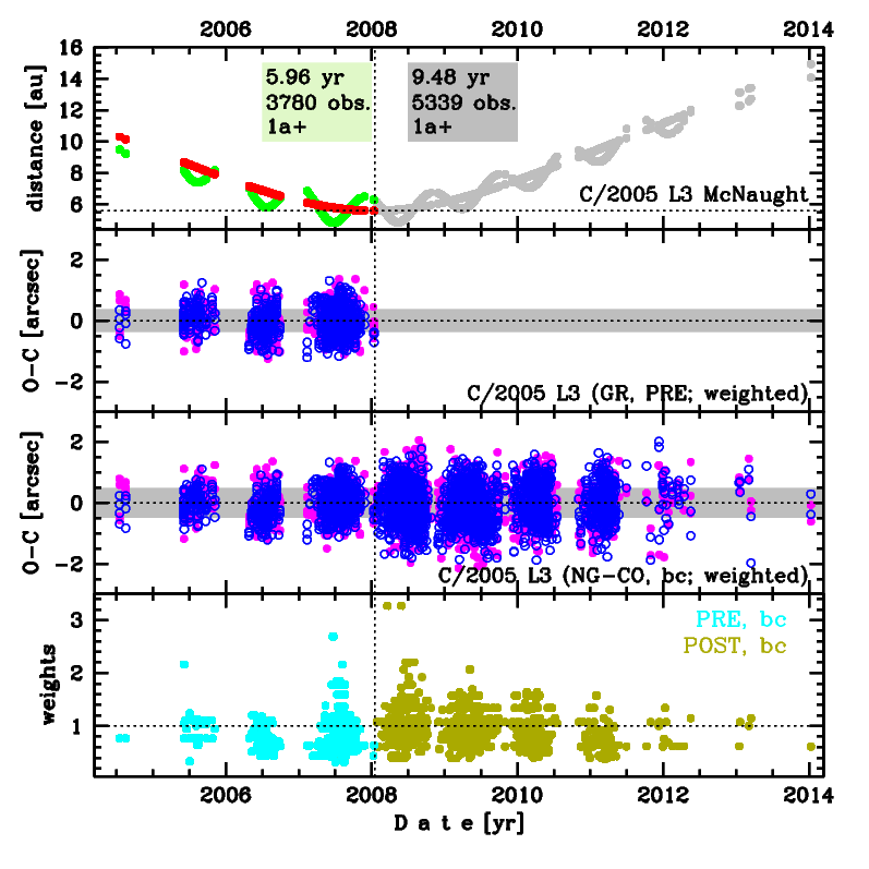 | data arc selection | data generally limited to pre-perihelion (PRE) | |