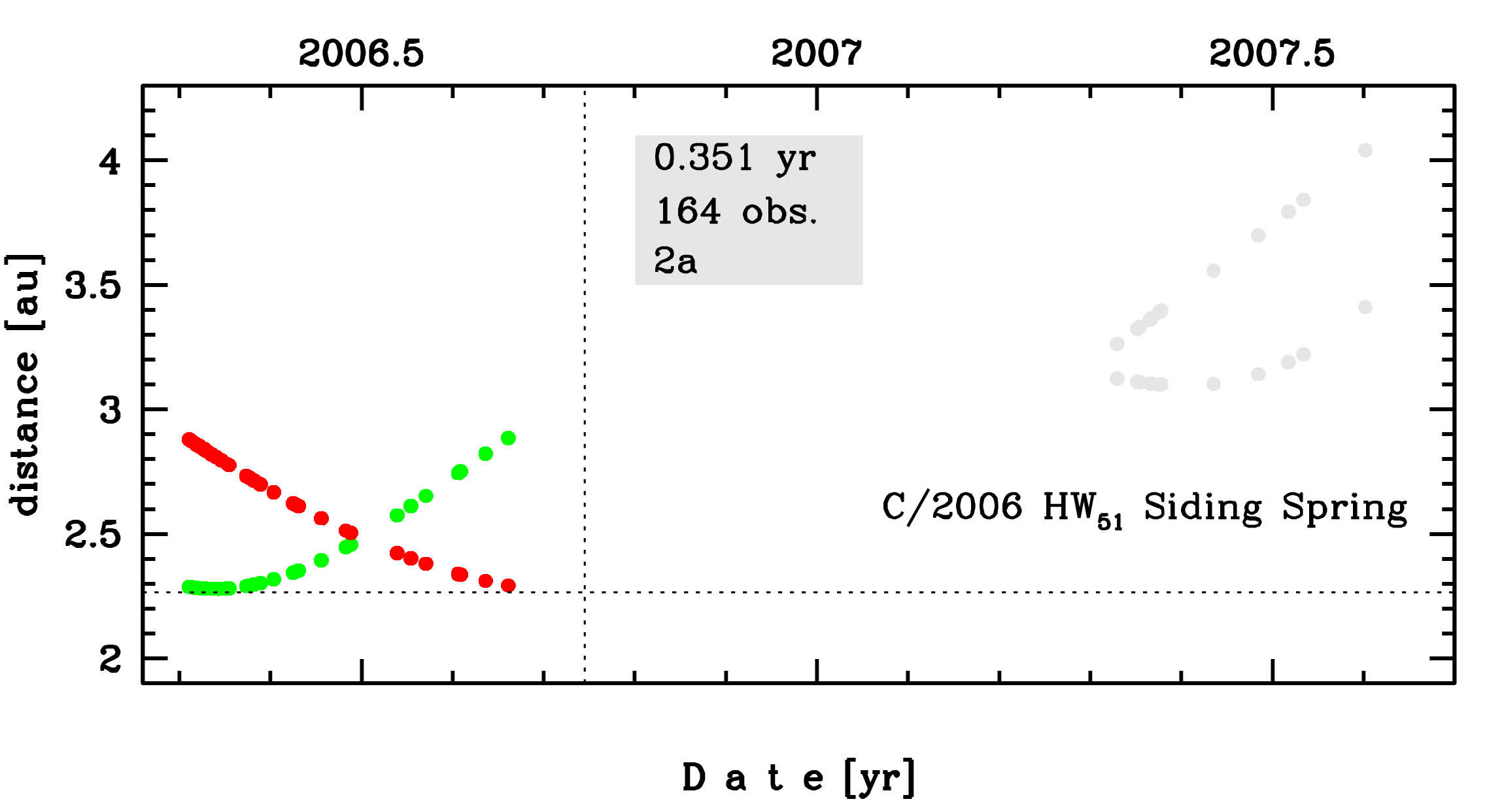 | perihelion distance [au] | 2.25937873 | ± 0.00000740 |