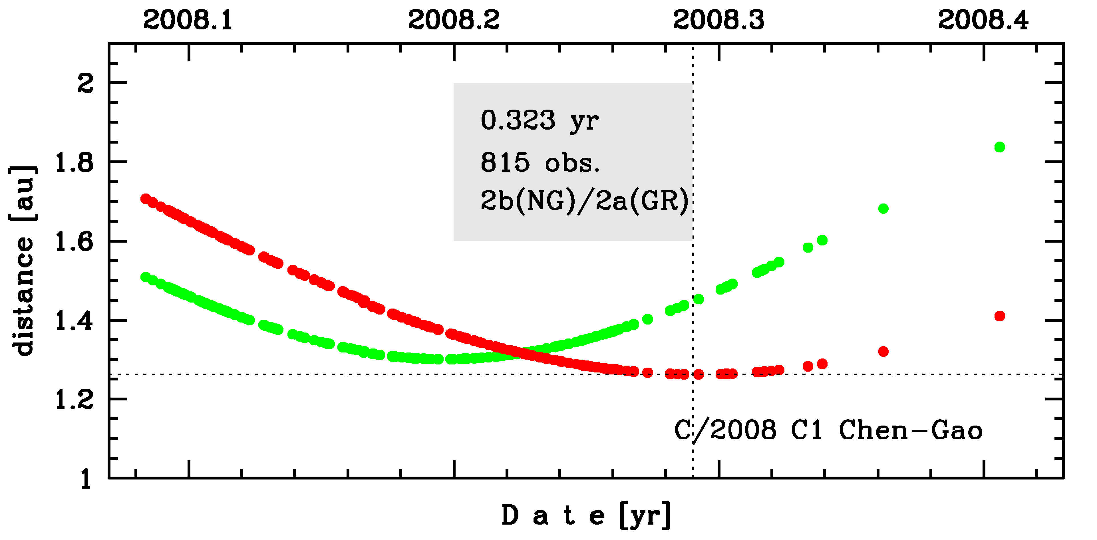 | detectability of NG effects in the comet's motion | comet with determinable NG~orbit | |