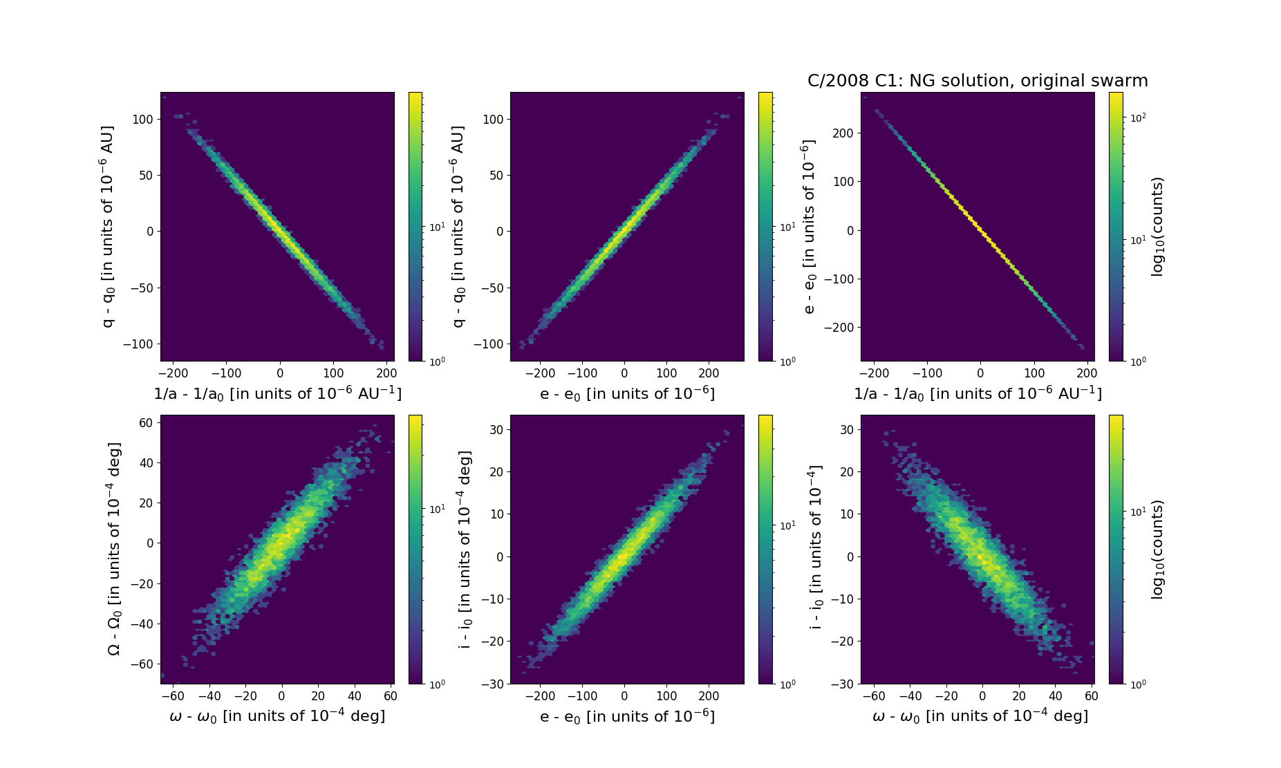 Solutions given here are based on data spanning over 0.323 yr in a range of heliocentric distances: 1.71 au – 1.262 au (perihelion) – 1.41 au. The non-gravitational solution was chosen as preferred orbit; however, uncertainties of NG parameters are large.