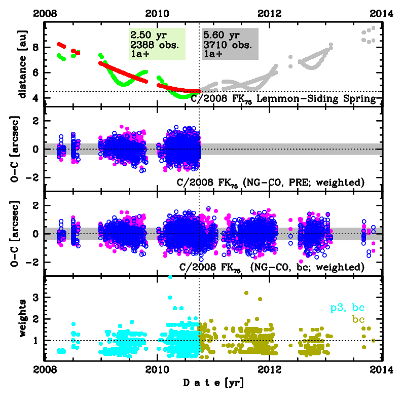 | data arc selection | data generally limited to pre-perihelion (PRE) | |
