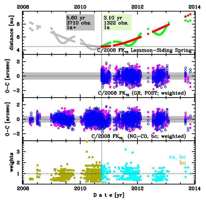 Observational arc of C/2008 FK75 covers 5.6 yr in a range of heliocentric distances: 8.24 au – 4.511 au (perihelion) – 9.51 au.