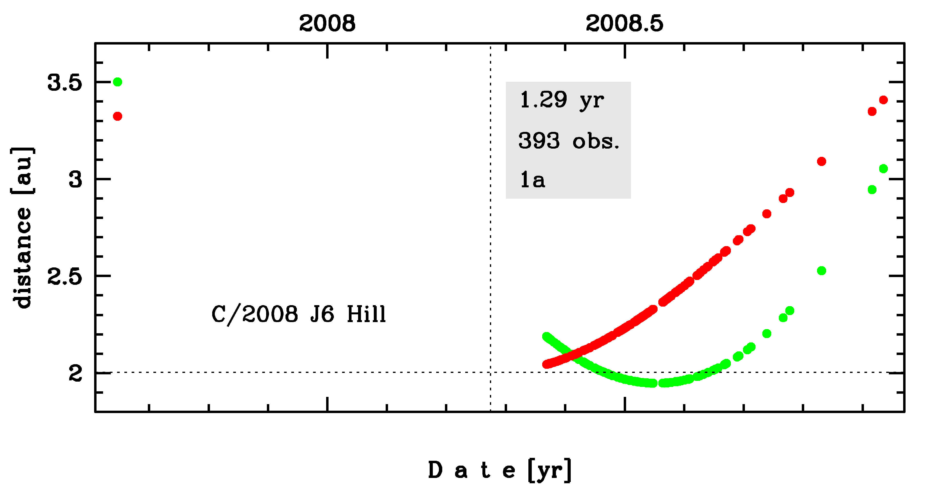 perihelion date 2008 04 10.94372442 ± 0.00018832