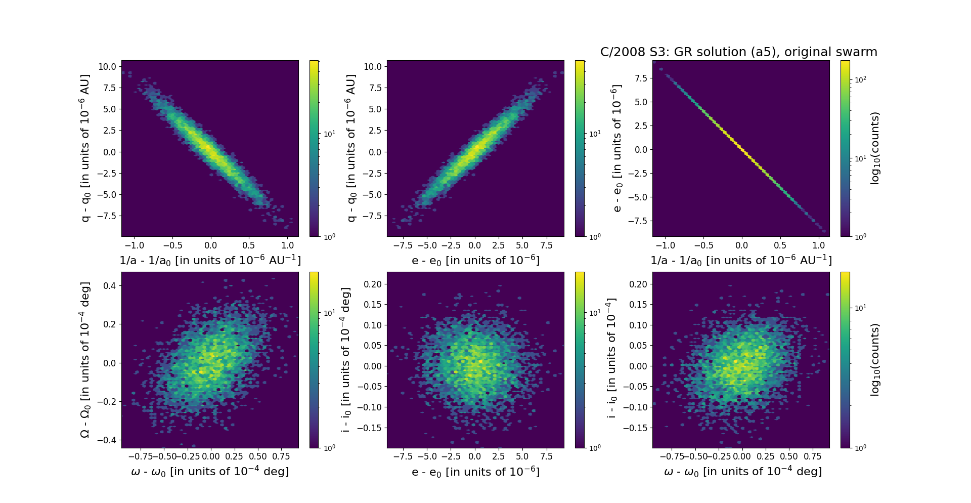 Comet C/2008 S3 was discovered on 29 September 2008, that is 4.5 yr before perihelion passage. Later, three series of pre-discovery measurements were found: from 2007 December 18 (Mt Lemmon Survey, 12.4 au from the Sun), 2007 December 4 (Catalina Sky Survey, 11.0 au), and 2006 December 27 (Mt Lemmon Survey, 10.9 au). Each of these series consists of four measurements. Thus, data arc covers 8.6,yr in a heliocentric distance range of 12.4 au – 8.015 au (perihelion) – 11.9 au.