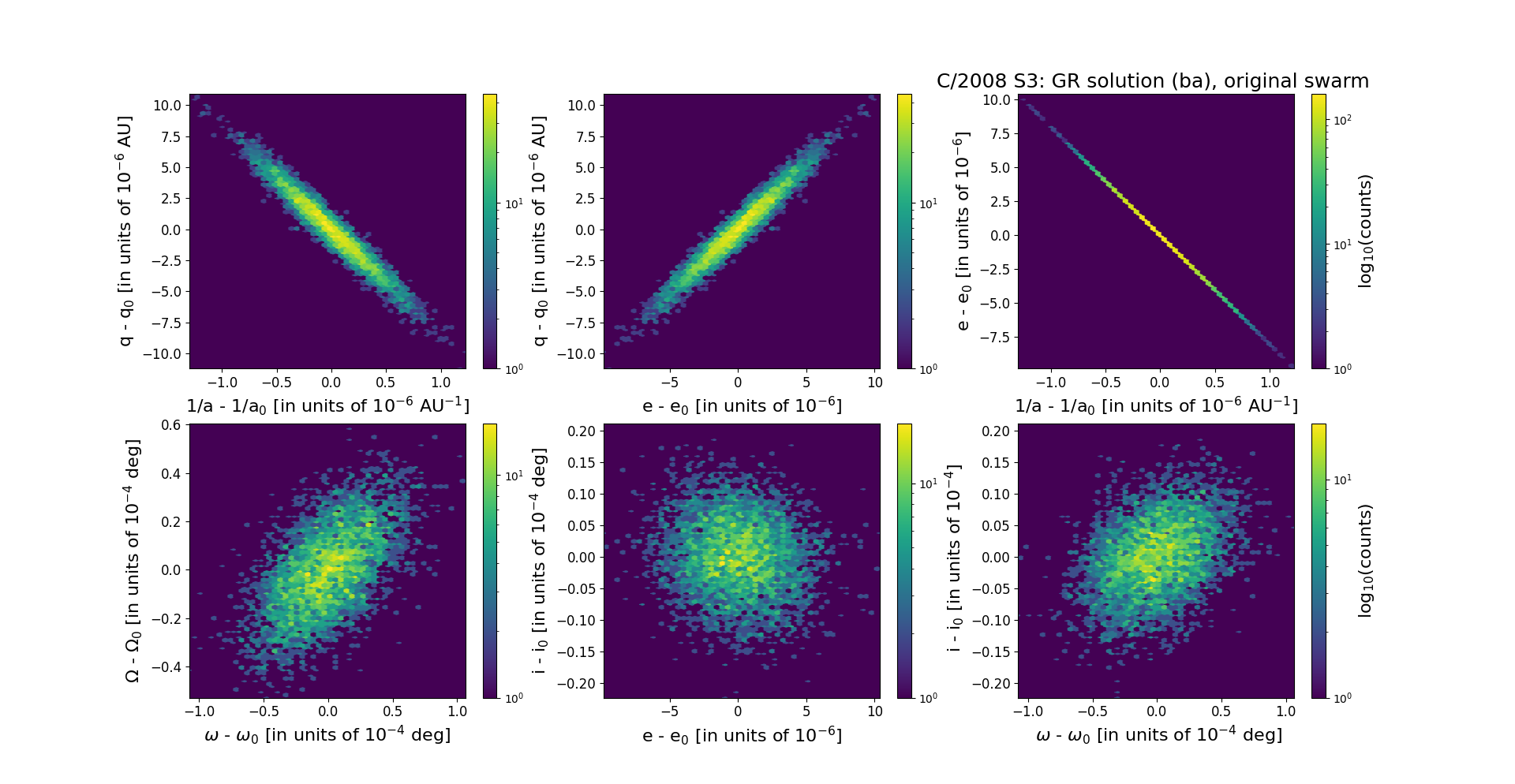 Comet C/2008 S3 was discovered on 29 September 2008, that is 4.5 yr before perihelion passage. Later, three series of pre-discovery measurements were found: from 2007 December 18 (Mt Lemmon Survey, 12.4 au from the Sun), 2007 December 4 (Catalina Sky Survey, 11.0 au), and 2006 December 27 (Mt Lemmon Survey, 10.9 au). Each of these series consists of four measurements. Thus, data arc covers 8.6,yr in a heliocentric distance range of 12.4 au – 8.015 au (perihelion) – 11.9 au.