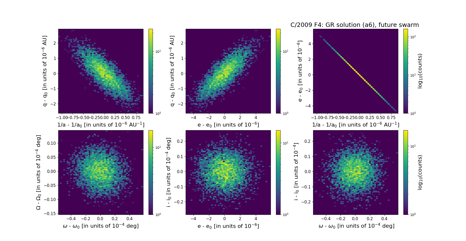 Comet C/2009 F4 was discovered on 19 March 2009, that is 2.8 yr before perihelion passage, and next was observed 6.4 yr during seven oppositions in a range of heliocentric distances: 8.96 au – 5.455 au (perihelion) – 10.5 au.