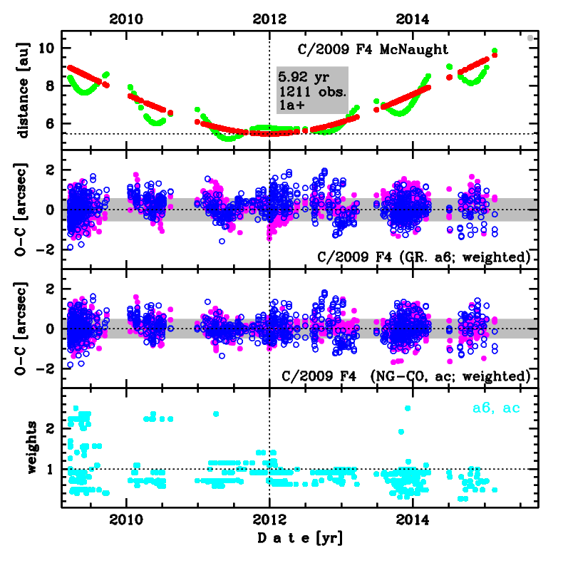 | type of model of motion | NC - non-gravitational orbits for symmetric CO-g(r)-like function | |