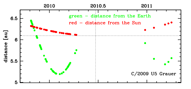 C/2009 U5 was discovered by Albert D. Grauer on 23 October 2009 on images taken with the Mt Lemmon 1.5-m reflector [IAUC 9088, 2009 October 25].