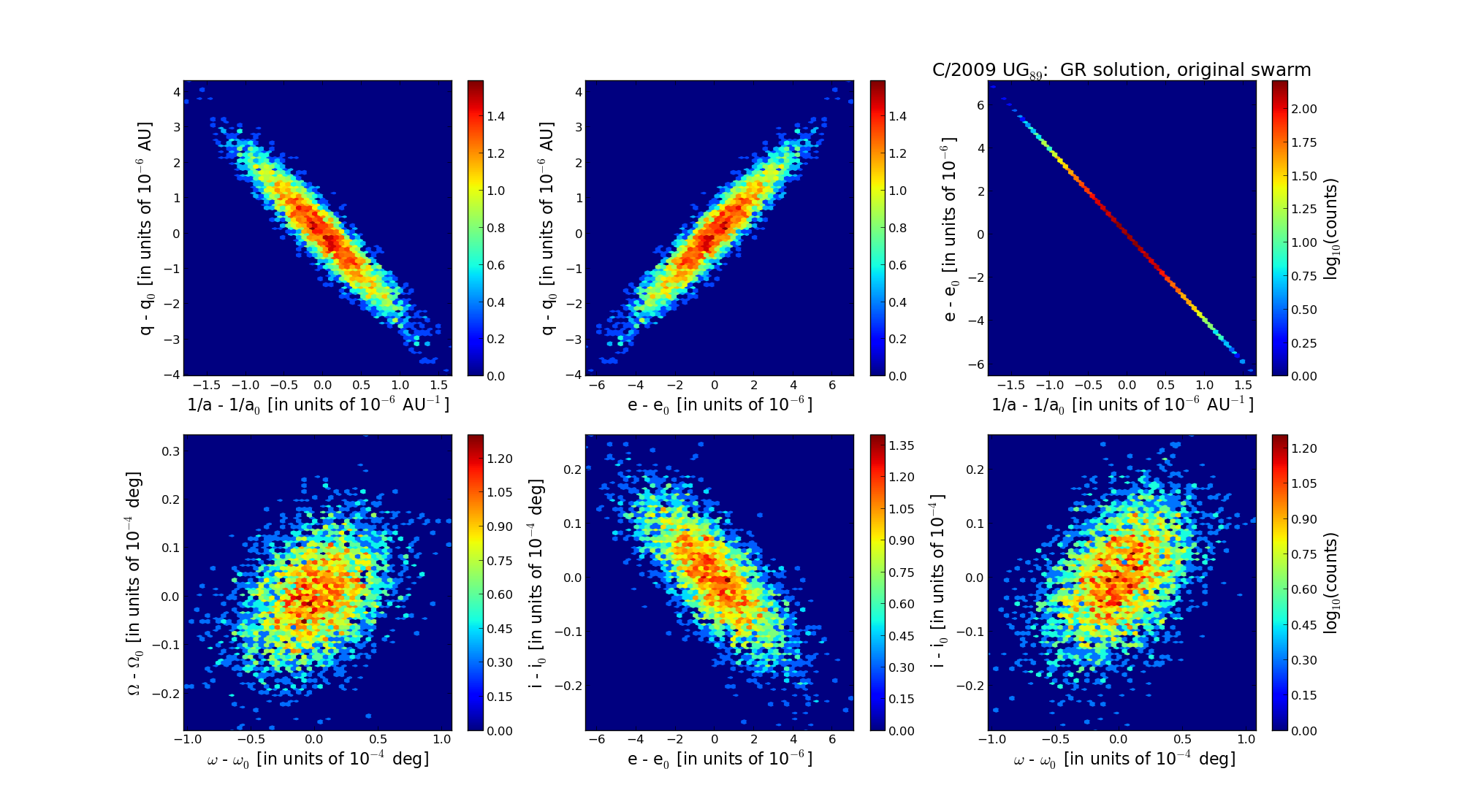 C/2009 UG89 was discovered on 22 October 2009 by Albert D. Grauer as an apparently asteroidal object (Mt Lemmon); CCD images taken by observers in April 2010 revealed a cometary activity [IAUC 9141, 2010 April 27]. C/2009 UG89 passed perihelion in December 2010.