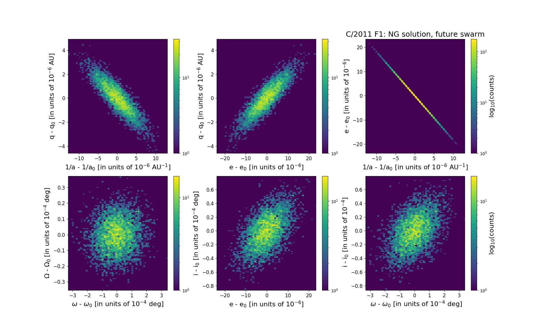This Oort spike comet suffers moderate planetary perturbations during its passage through the planetary system; these perturbations lead to a more tight future orbit (see future barycentric orbits).