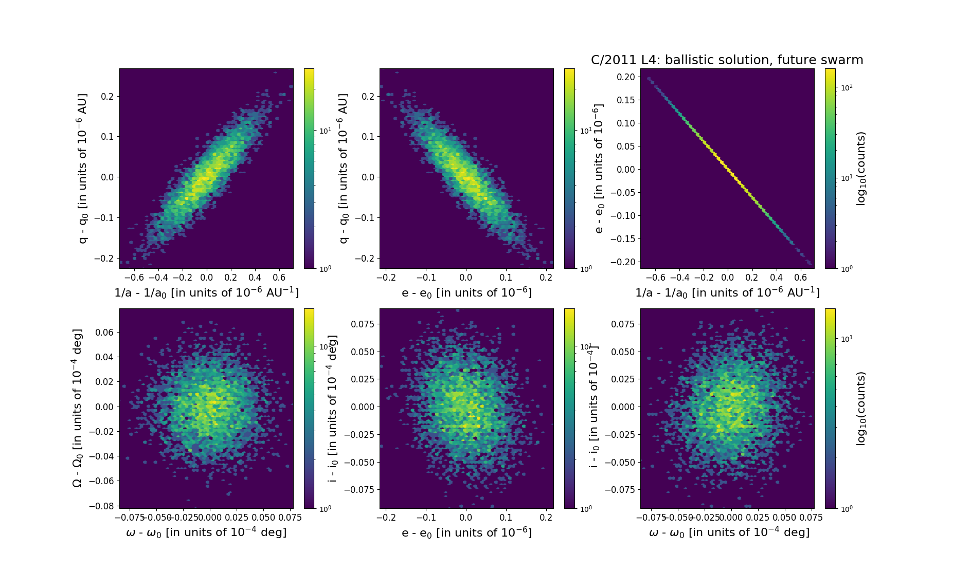 This Oort spike comet suffers moderate planetary perturbations during its passage through the planetary system; these perturbations lead to a more tight future orbit (see future barycentric orbits).