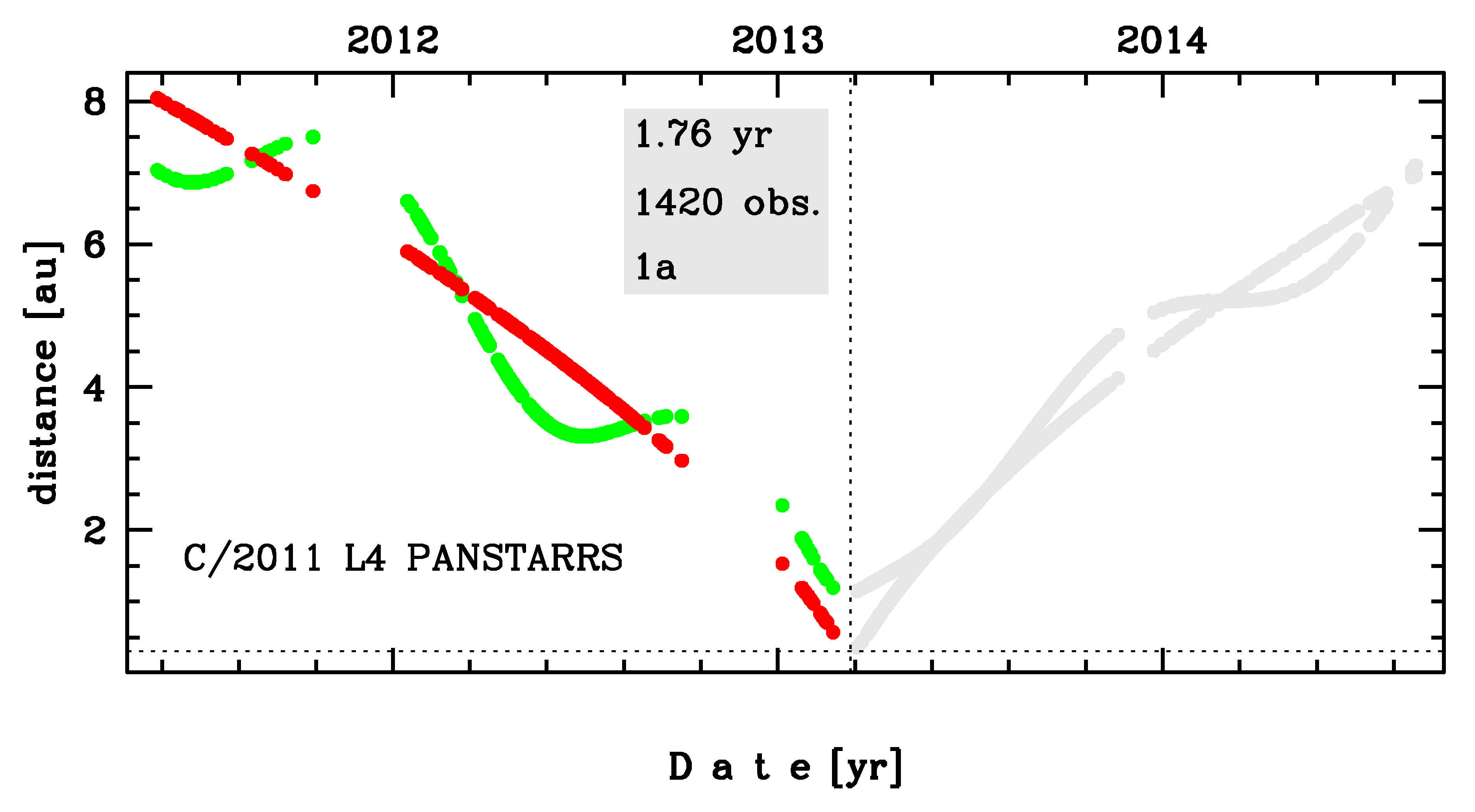 | data arc selection | data generally limited to pre-perihelion (PRE) | |