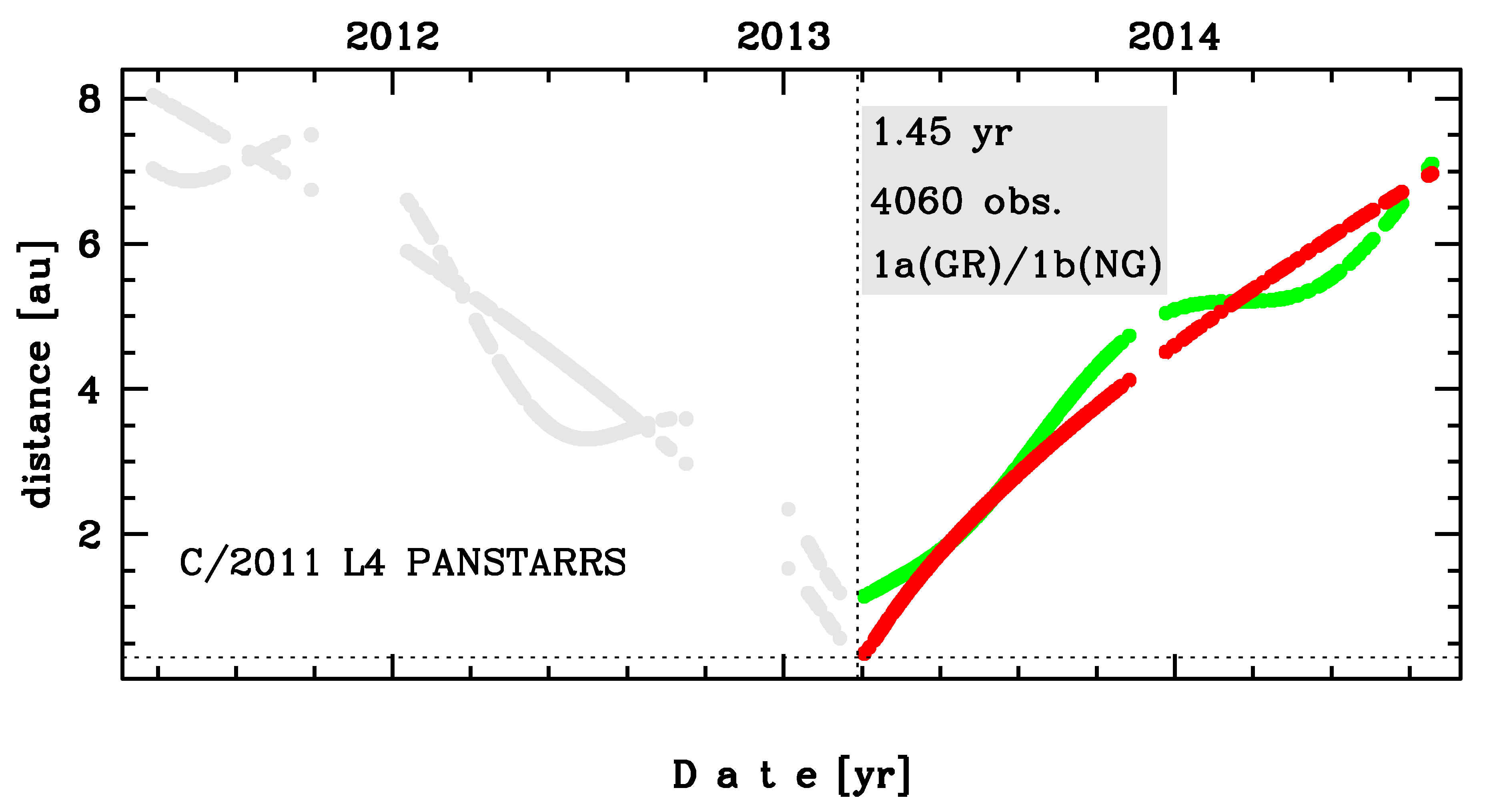 | detectability of NG effects in the comet's motion | comet with determinable NG~orbit | |