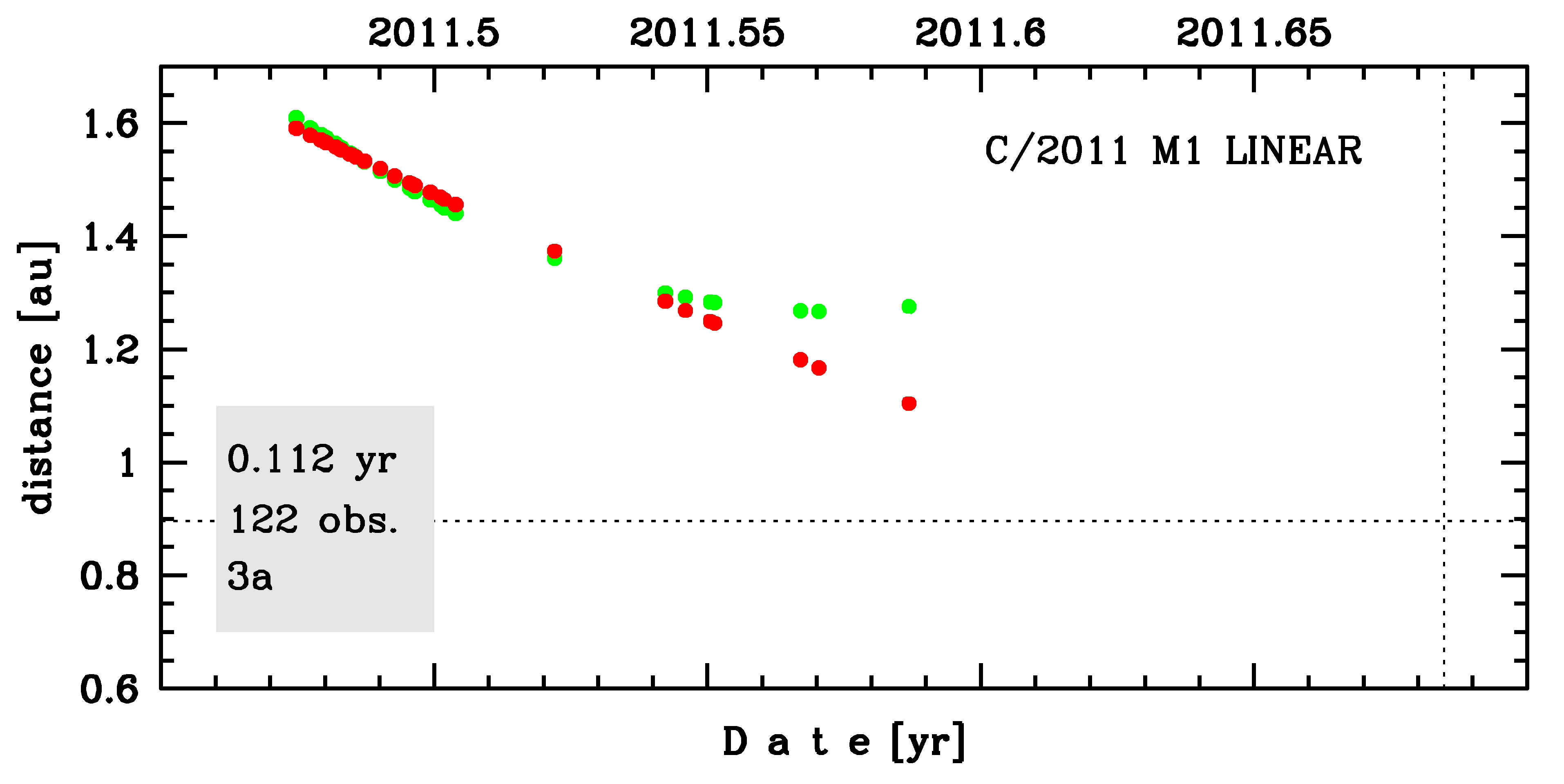 | range of heliocentric distances | 1.59 au – 1.1au | |