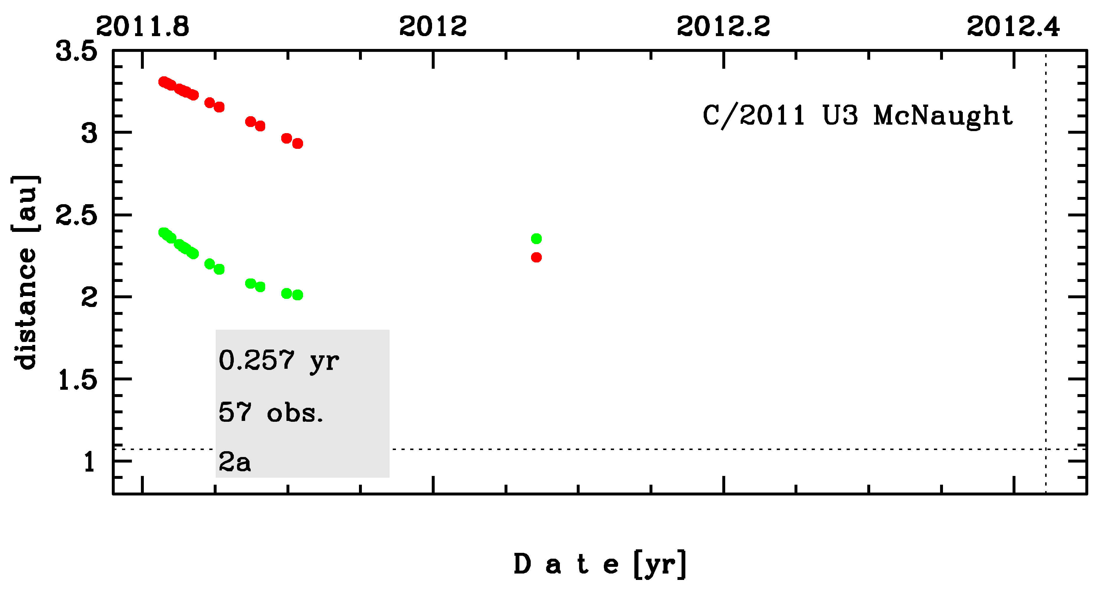 C/2011 U3 was observed only before peryhelion; however, the future orbit is given here.